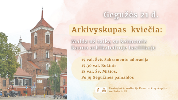 Gegužės 21 d. , trečiadienį, arkivyskupo Kęstučio Kėvalo kvietimu Kauno arkikatedroje bazilikoje meldžiamės už taiką su šeimomis.