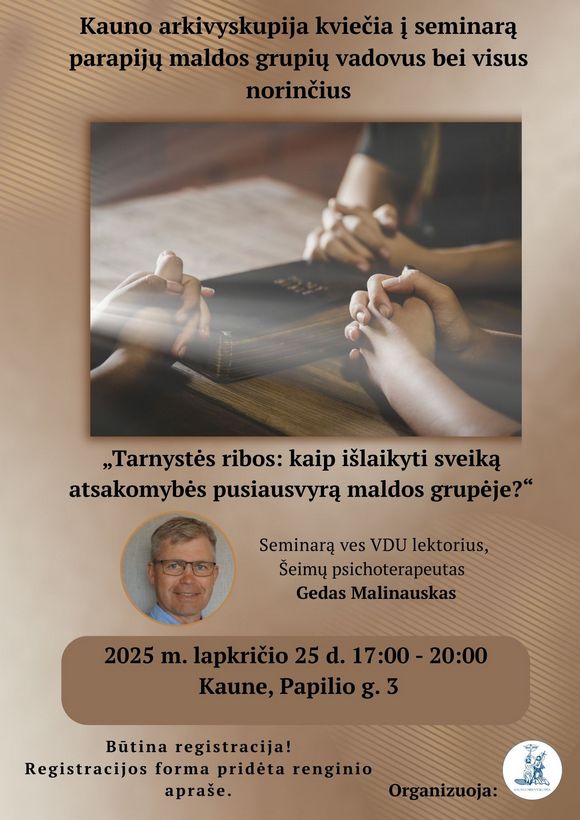 Lapkričio 25 d., antradienį, Kauno arkivyskupija kviečia į seminarą parapijų maldos grupių vadovus bei visus norinčius.