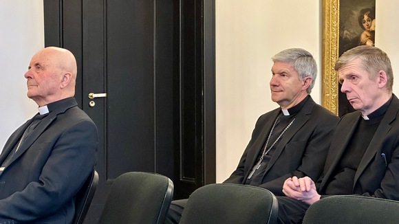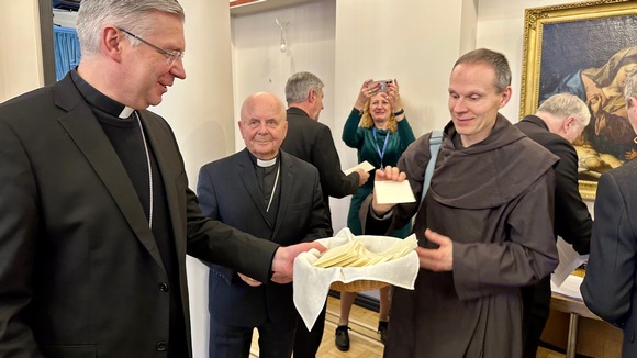 Į šią konferenciją atvykusius brolius kunigus arkivyskupas Kęstutis Kėvalas po pertraukos vėl sutiko kurijoje.