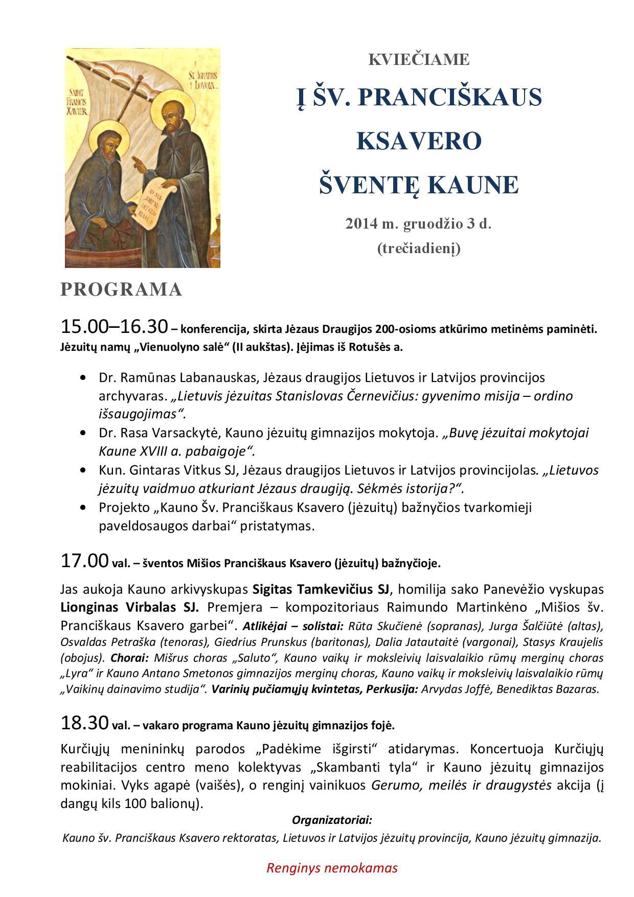 03T 979Šv. Pranciškaus Ksavero šventė KauneKaunasprograma >>