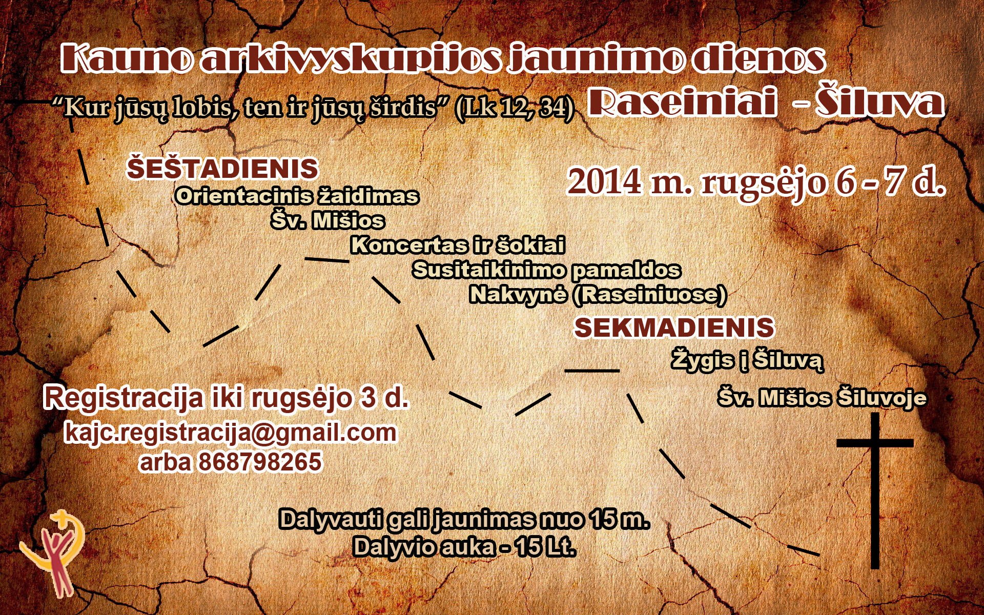 06Š 928JAUNIMO DIENOS „Kur jūsų lobis, ten jūsų širdis“ (Lk 12, 34) Raseiniuose ir ŠILUVOJE (rugsėjo 6–7 d., registracija baigta) Raseiniai, Šiluva