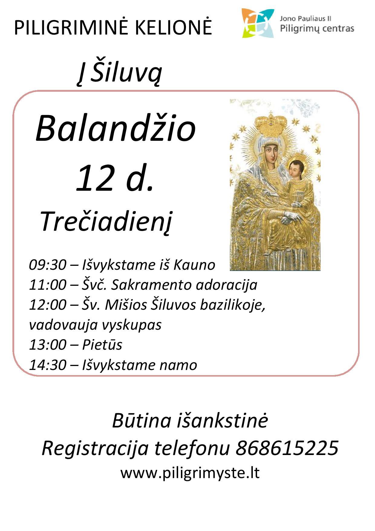 | 25 | Pn | 1695LIGONIŲ diena ŠILUVOJE | Šiluva | |
