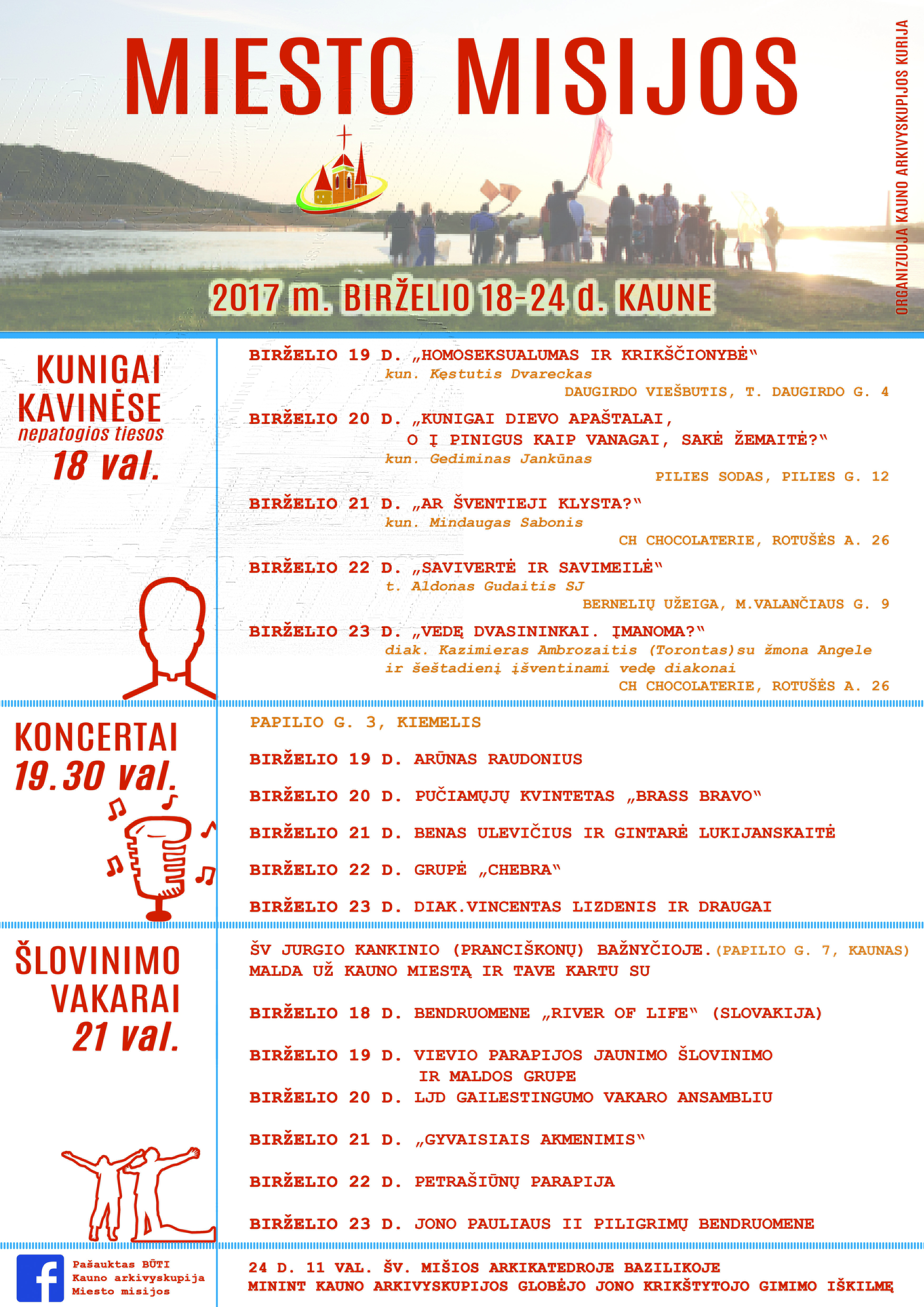 | 27 | S | 1880Padėkos už laisvę, tremtinių, partizanų ir kovotojų už laisvę diena ŠILUVOJE. Tradicinės piligrimų eisenos. Malda prie palaimintojo Teofiliaus MATULIONIO didžiojo relikvijoriaus | Šiluva | Jono Pauliaus II piligrimų centras organizuoja kelionę. Būtina išankstinė registracija mob. 8 686 15 225 arba el. p. piligrimu.centras@gmail.com Plačiau apie keliaujantį pal. T. Matulionio relikvijorių – www. teofilius.lt >> |