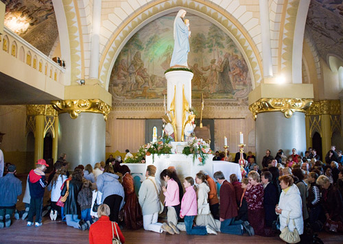 Sovietmečiu valdžia visaip trukdė maldininkams dalyvauti atlaiduose: milicininkai kabinėdavosi prie vairuotojų, užtverdavo net šunkelius. Tačiau tai nesustabdydavo maldininkų. Miestelio aikštėje vietoj Marijos statulos buvo pastatytas sovietų paminklas.