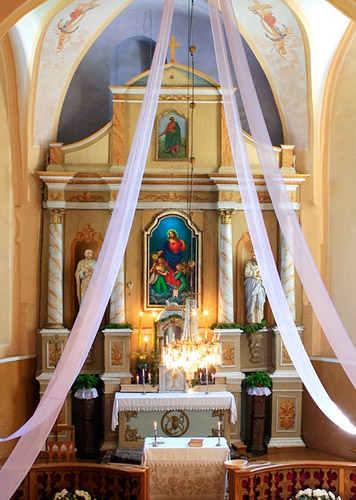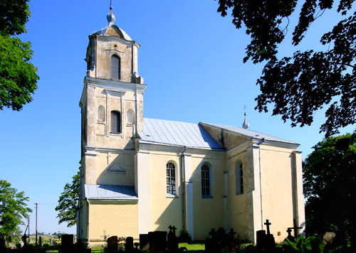 Pirmoji bažnyčia pastatyta iki 1635 m., fundatorius – grafas Petras Šiukšta. Inventoriuje nurodyta 1642 m. veikianti medinė bažnyčia ir statoma mūrinė. Ji 1674–1677 m. dar nebuvo pastatyta. Karališkasis rotmistras Kazimieras Zaviša su žmona Kristina Mlečkaite XVII a. pabaigoje įrengė altariją. Bažnyčioje pamaldas XVIII a. laikydavo Kėdainių misijos jėzuitai. XVIII a. veikė parapinė mokykla. 1851 m. gautas leidimas pristatyti bokštą.