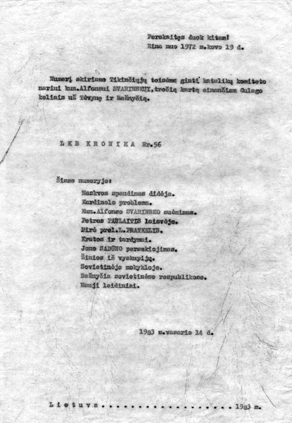 1972 m. „Lietuvos Katalikų Bažnyčios kronikos“ pradžia, Tikinčiųjų teisėms ginti katalikų komitetas
