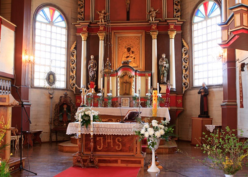 Muniškių bažnyčios vidaus panorama (~2012 m.)