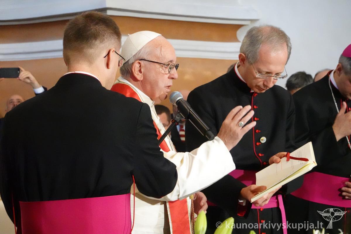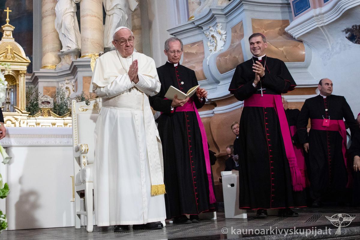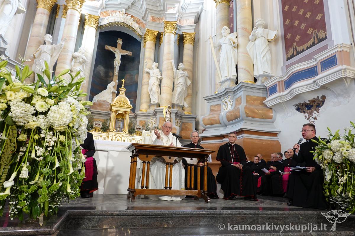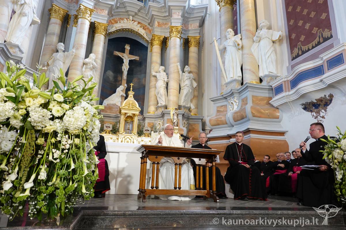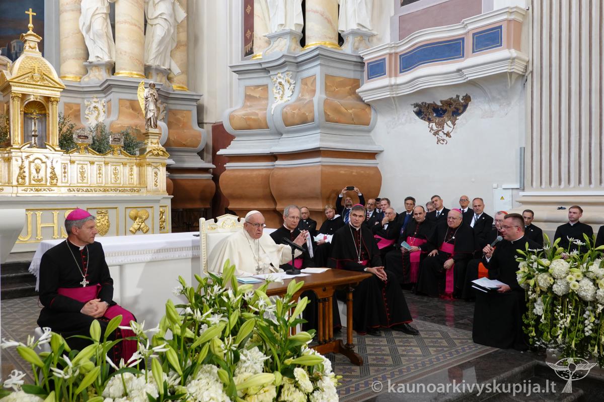 FOTOALBUMAS: Popiežius PRANCIŠKUS susitinka su dvasininkais, seminaristais ir pašvęstaisiais Kauno arkikatedroje, 2018 m. rugsėjo 23 d.