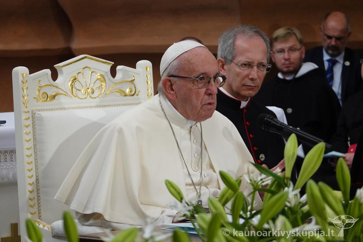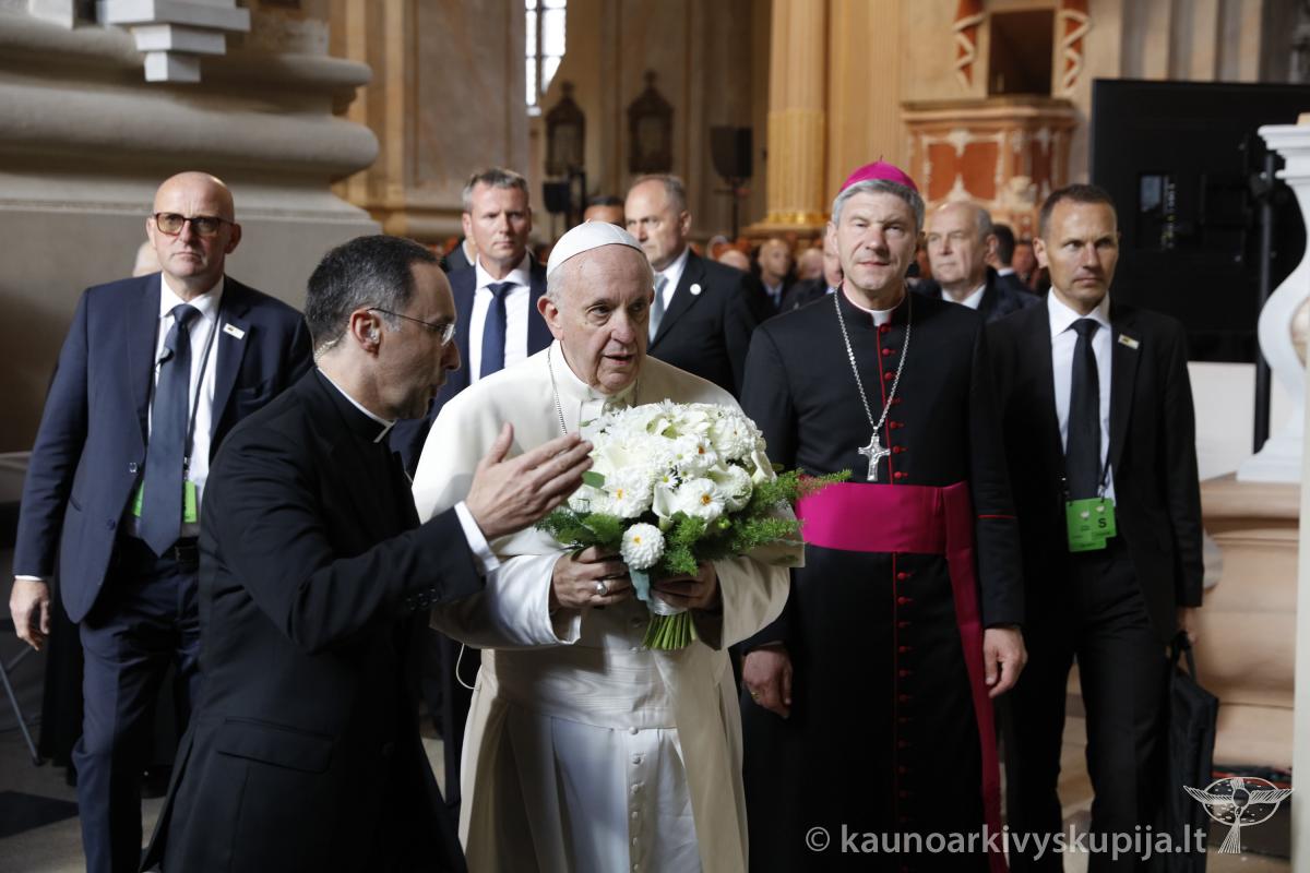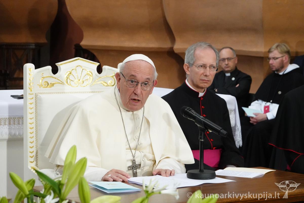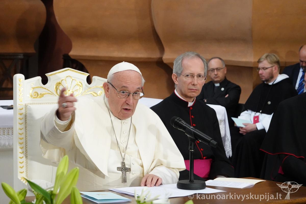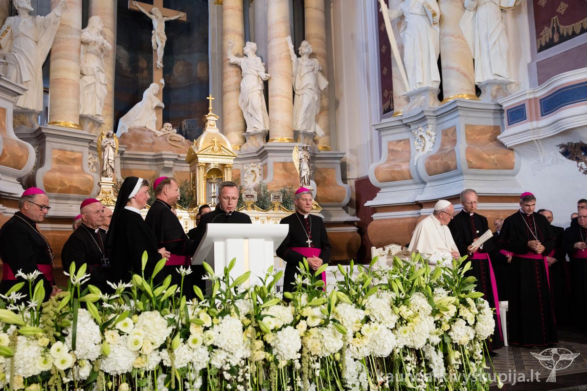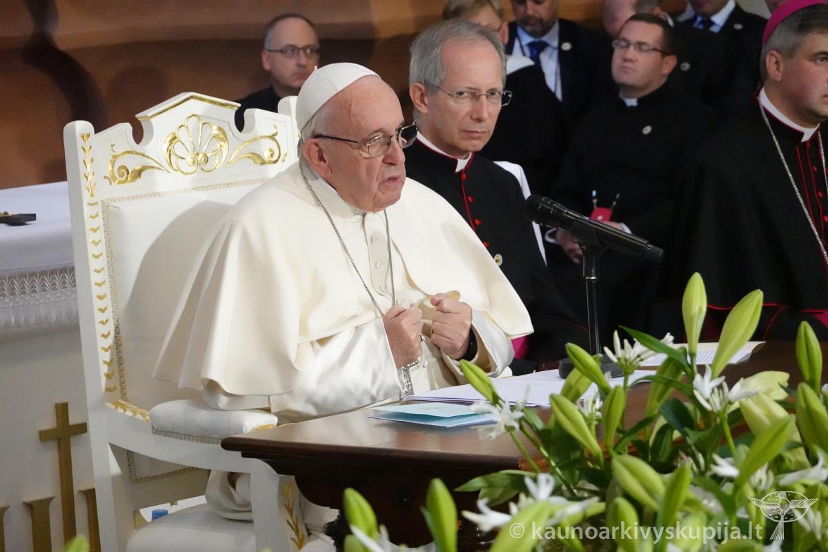 FOTOALBUMAS: Popiežius PRANCIŠKUS susitinka su dvasininkais, seminaristais ir pašvęstaisiais Kauno arkikatedroje, 2018 m. rugsėjo 23 d.