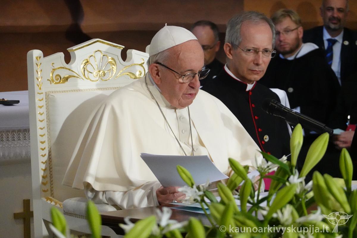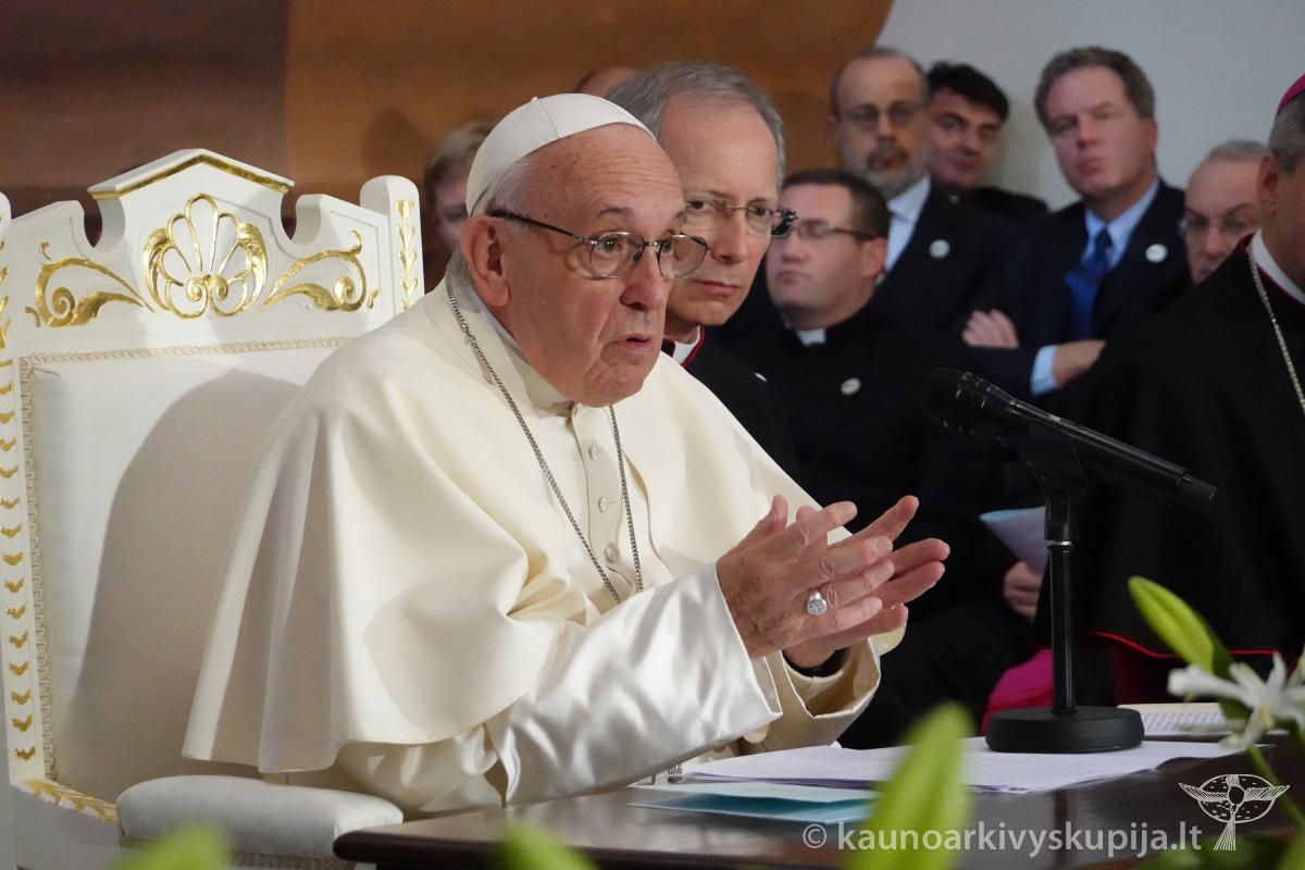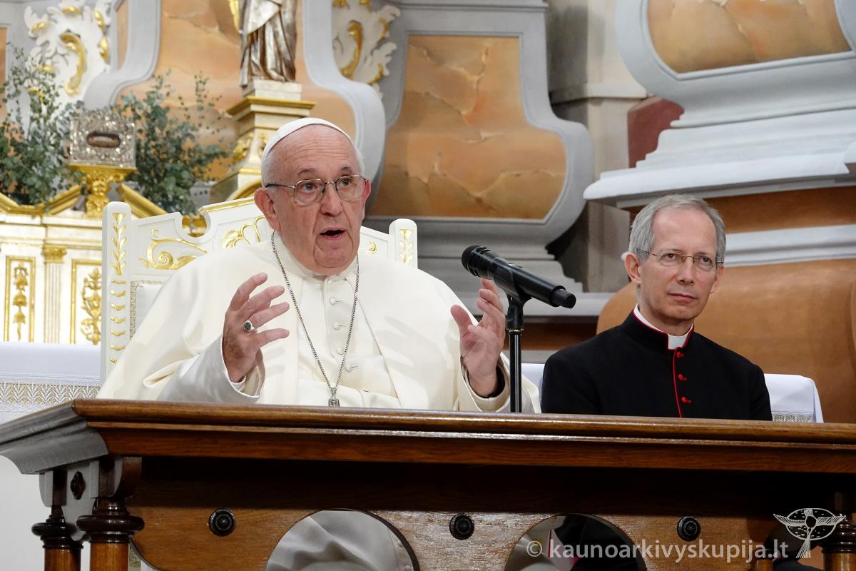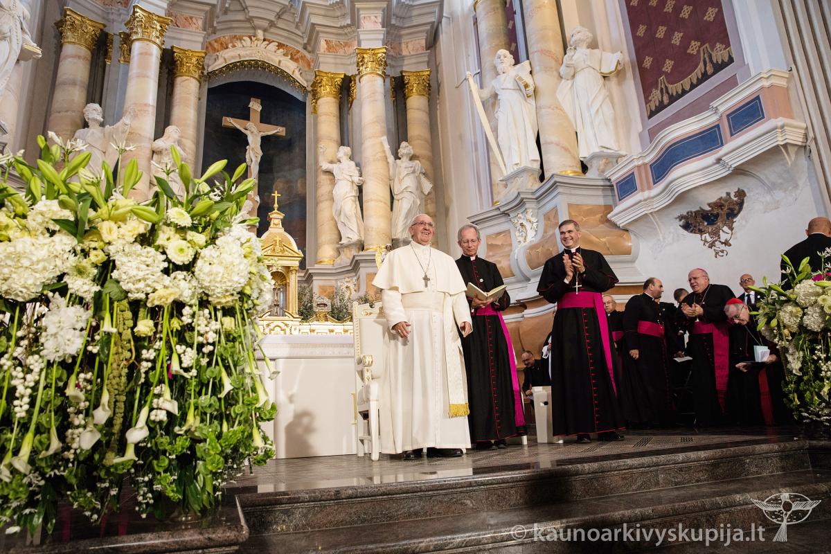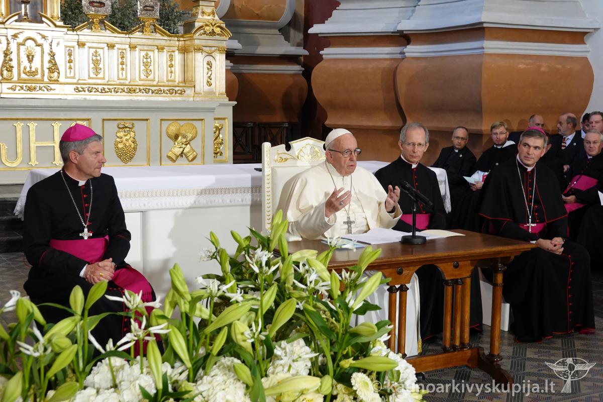 FOTOALBUMAS: Popiežius PRANCIŠKUS susitinka su dvasininkais, seminaristais ir pašvęstaisiais Kauno arkikatedroje, 2018 m. rugsėjo 23 d.