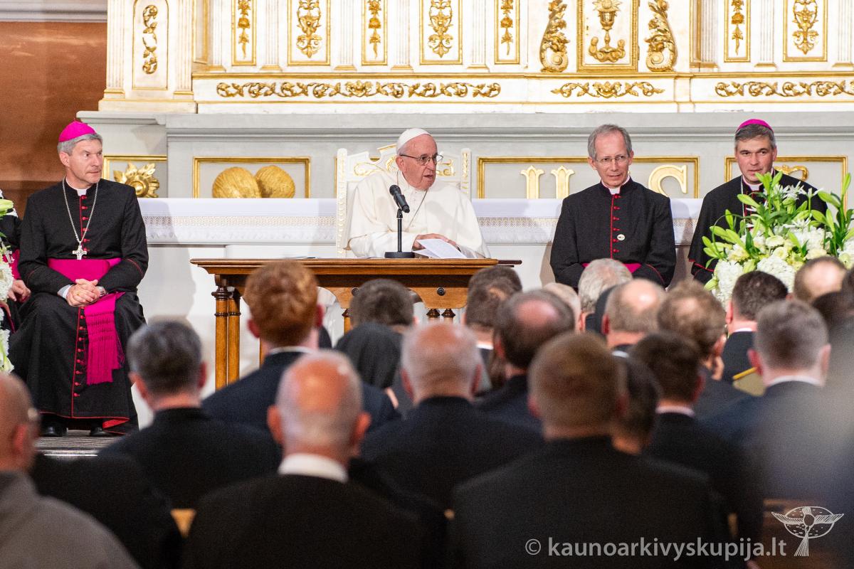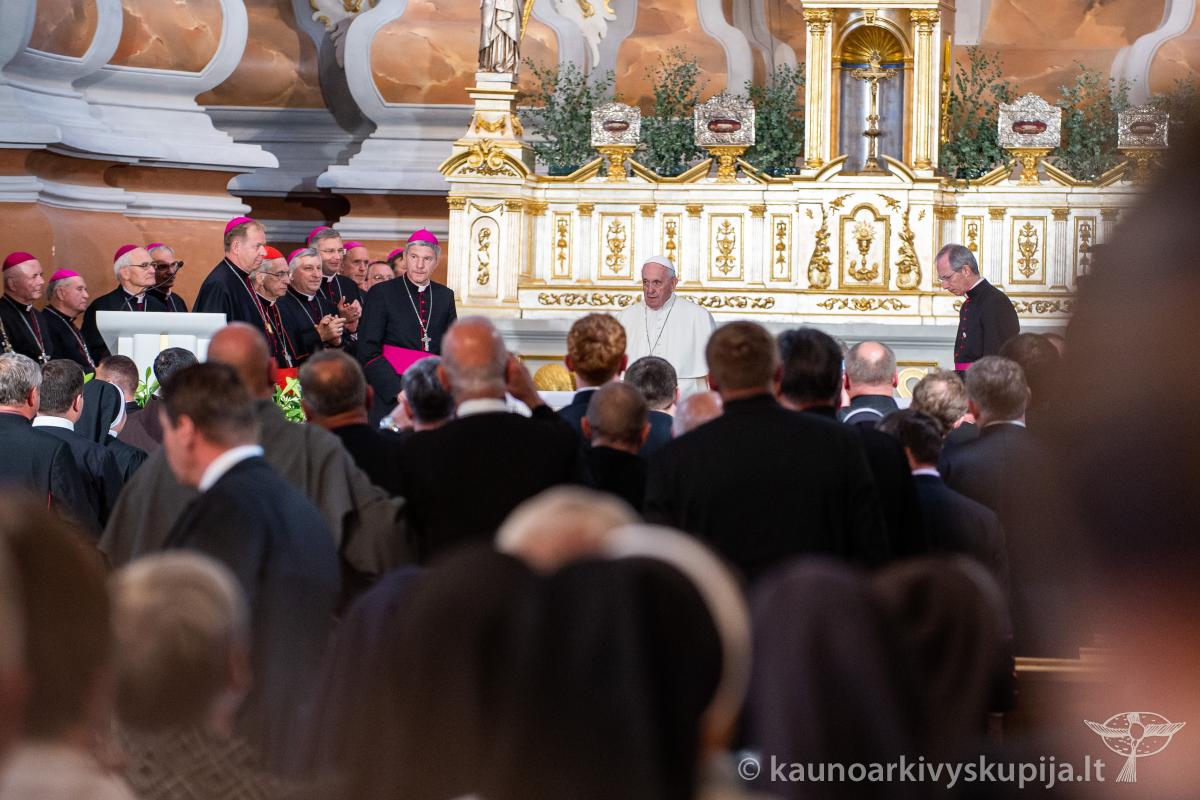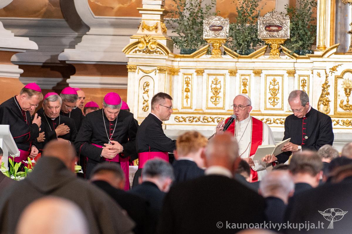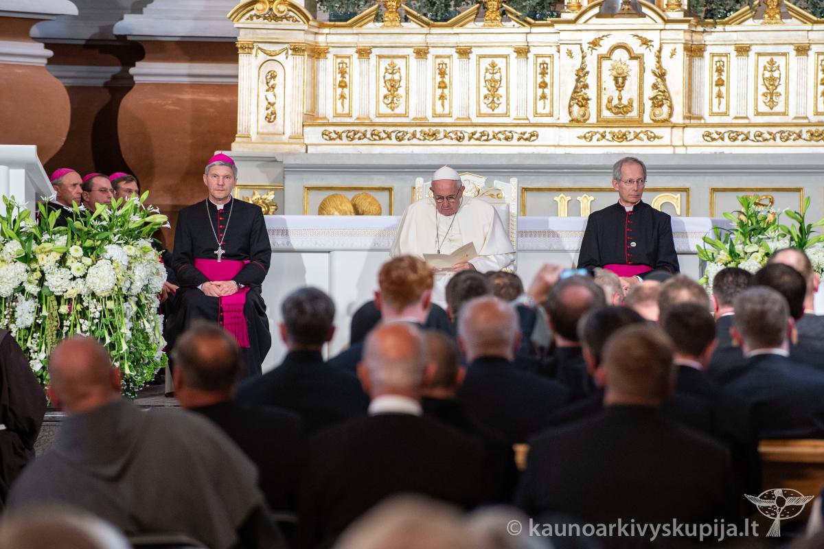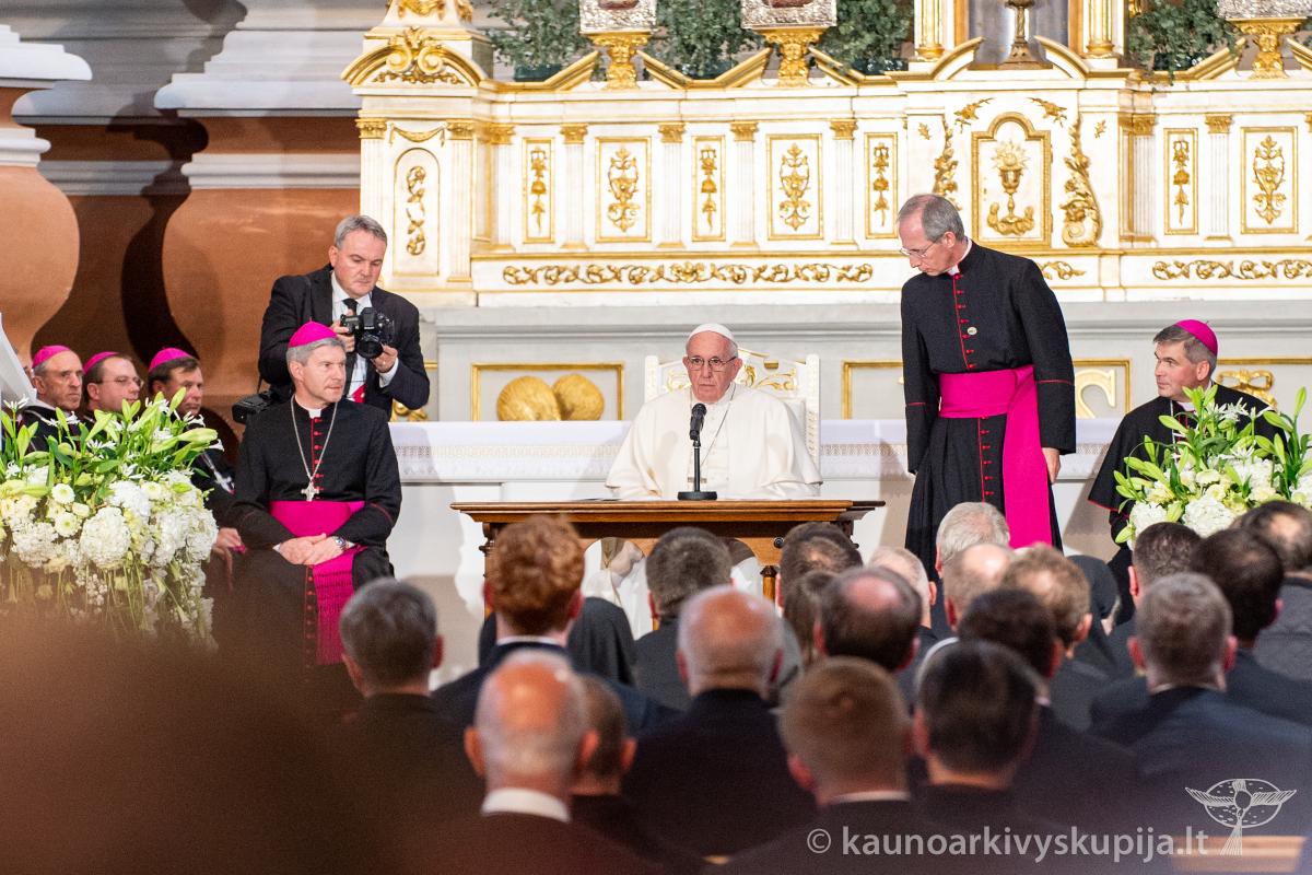 FOTOALBUMAS: Popiežius PRANCIŠKUS susitinka su dvasininkais, seminaristais ir pašvęstaisiais Kauno arkikatedroje, 2018 m. rugsėjo 23 d.