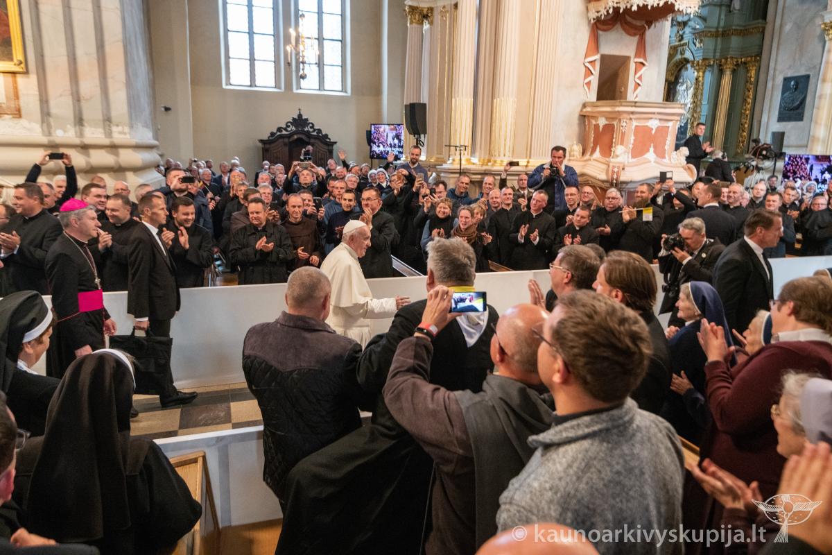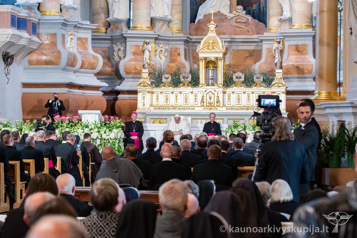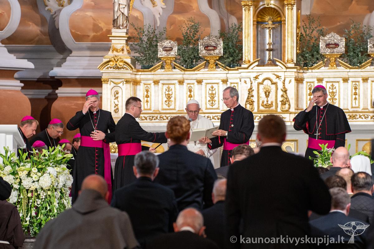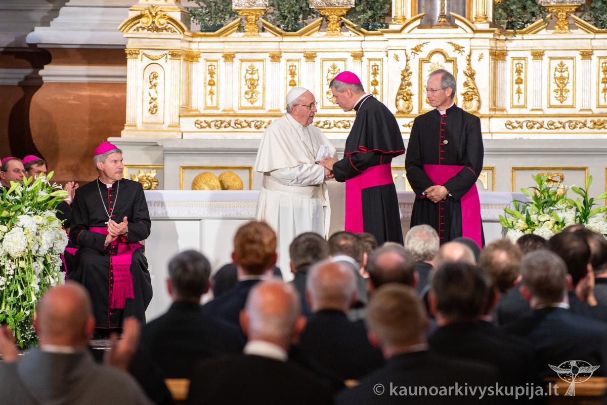 FOTOALBUMAS: Popiežius PRANCIŠKUS susitinka su dvasininkais, seminaristais ir pašvęstaisiais Kauno arkikatedroje, 2018 m. rugsėjo 23 d.
