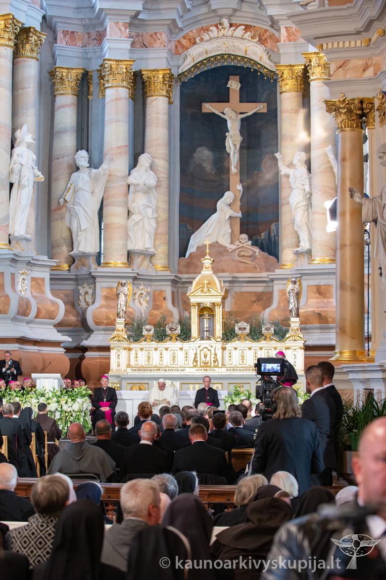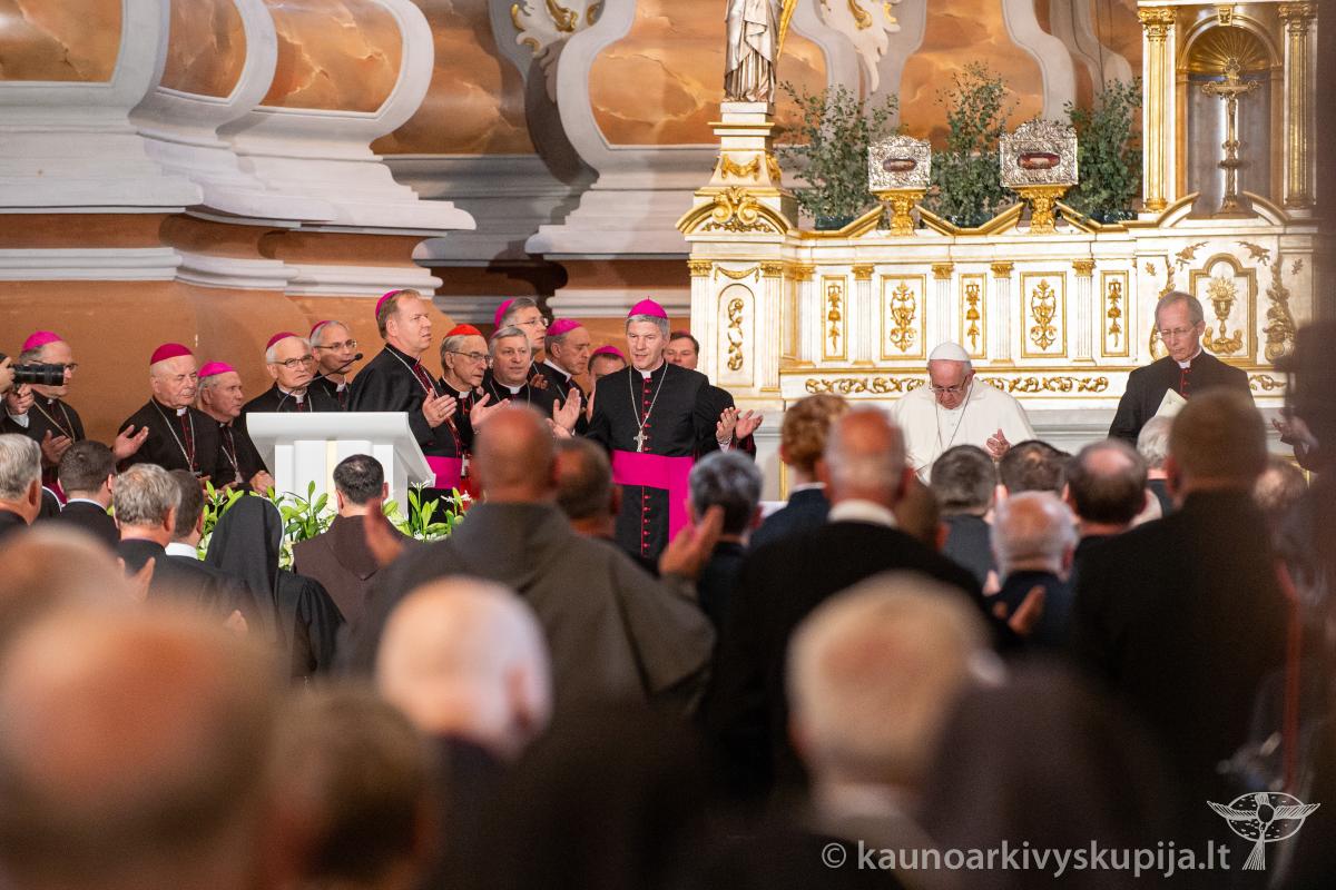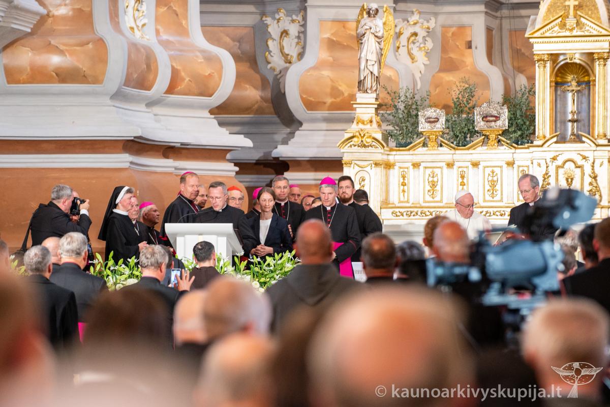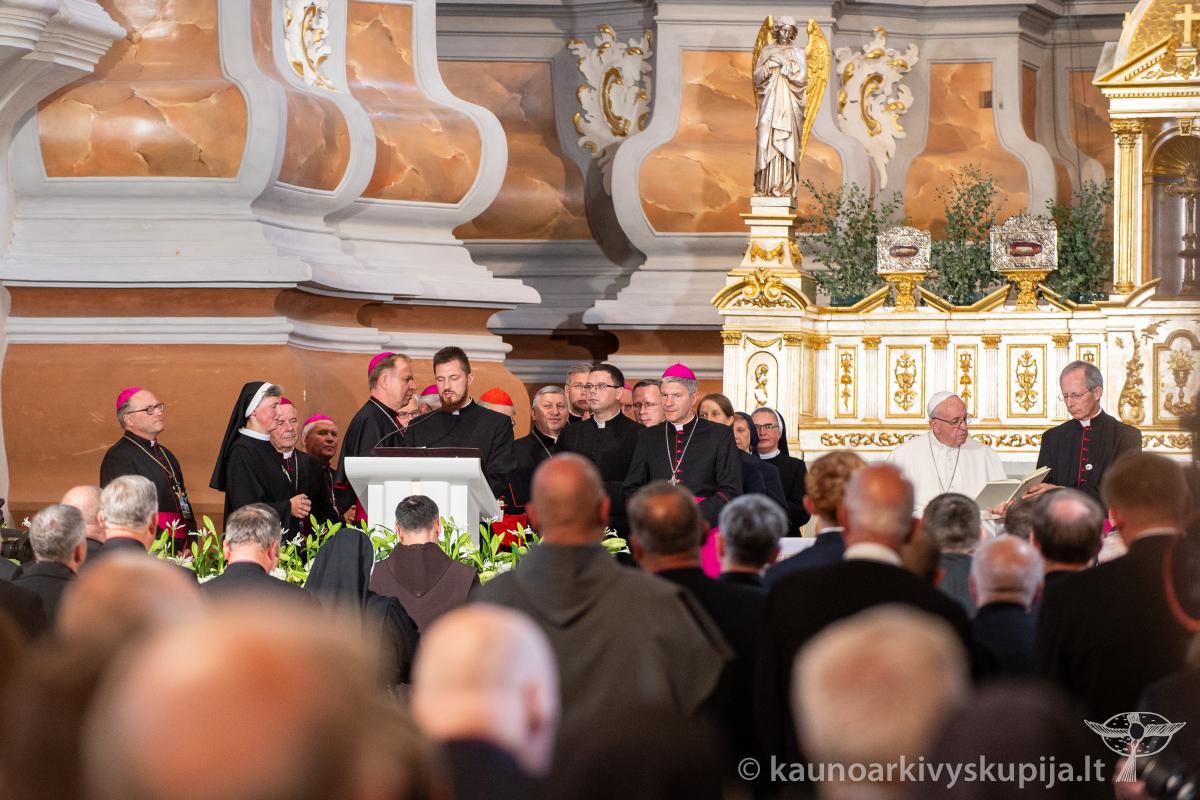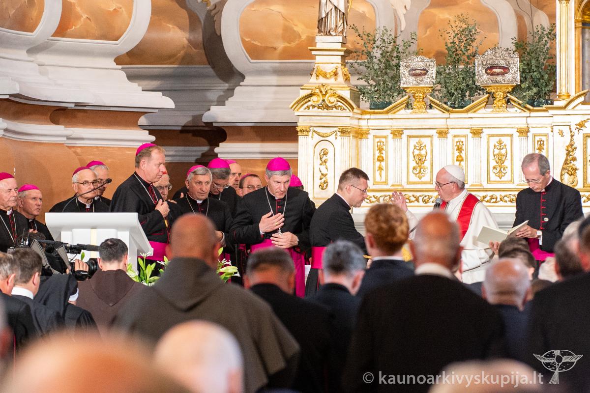FOTOALBUMAS: Popiežius PRANCIŠKUS susitinka su dvasininkais, seminaristais ir pašvęstaisiais Kauno arkikatedroje, 2018 m. rugsėjo 23 d.