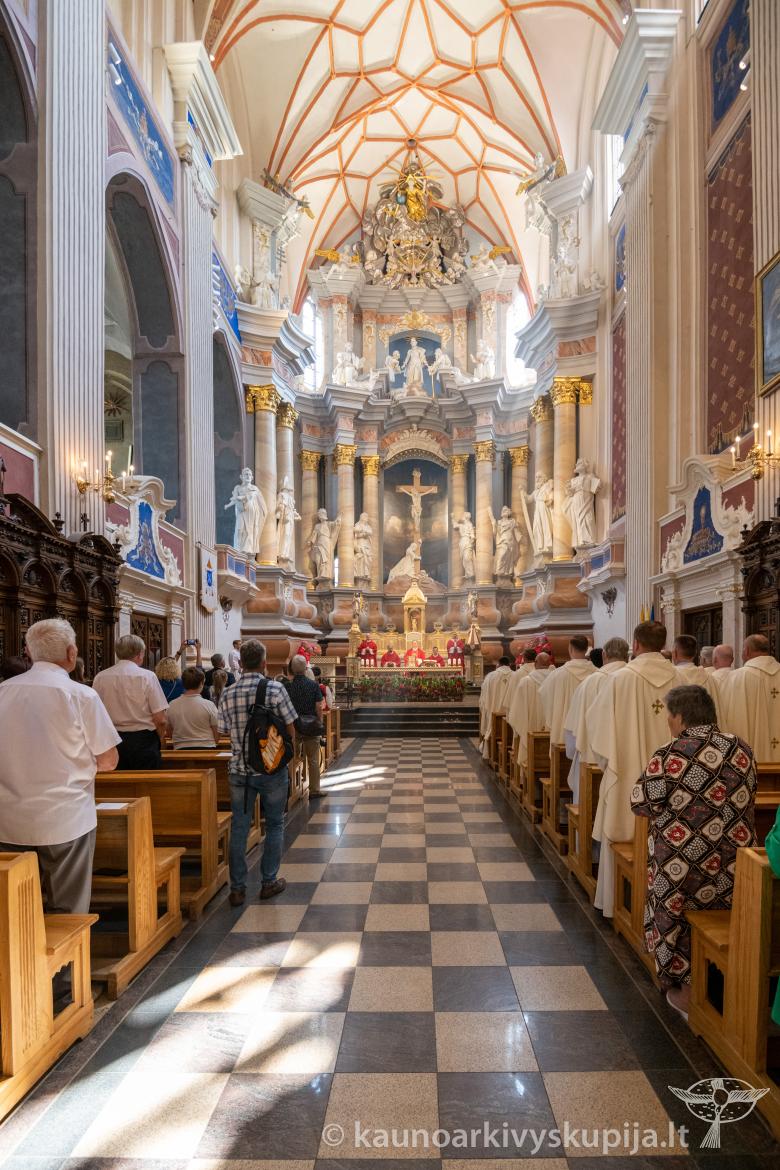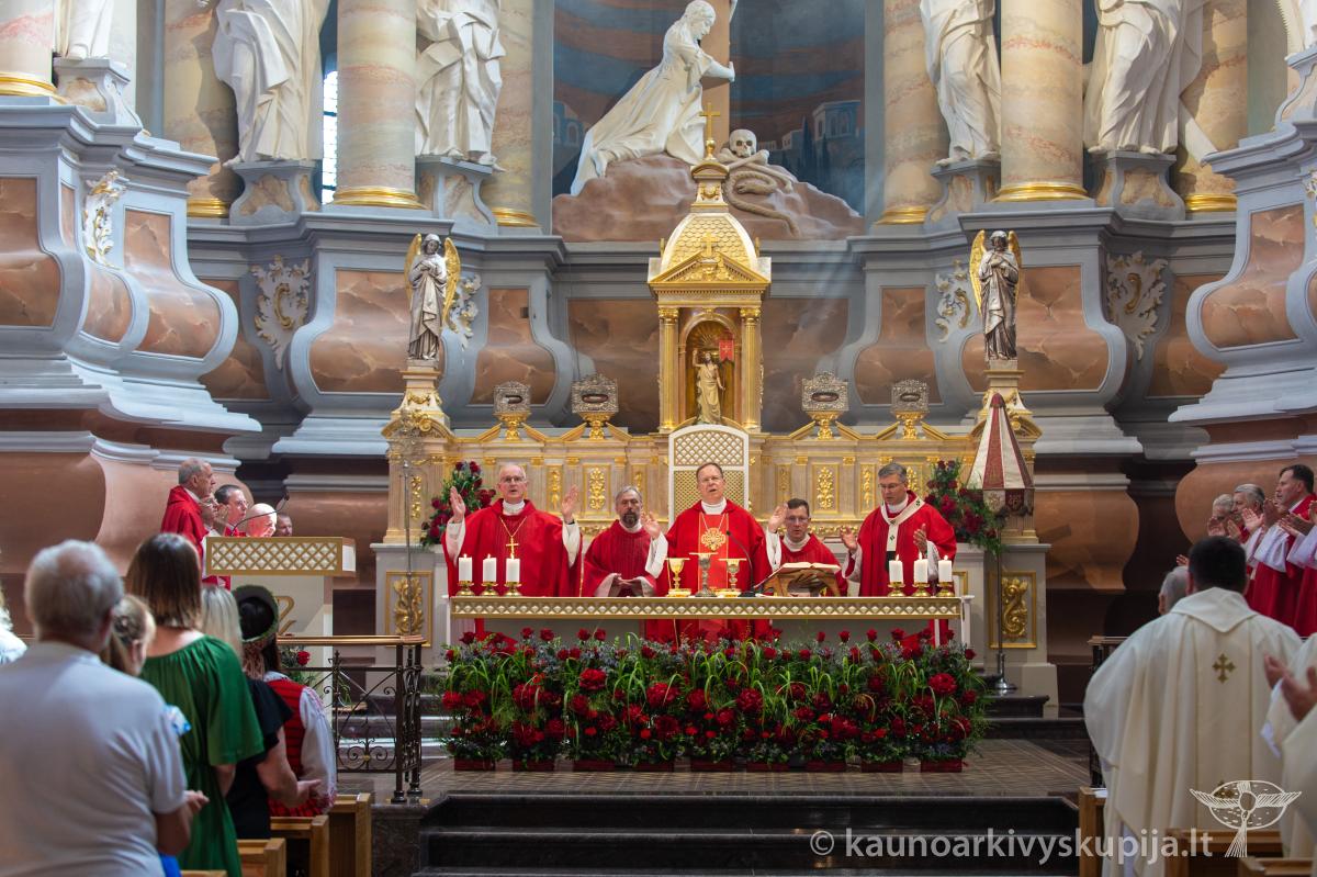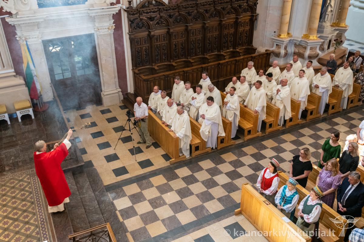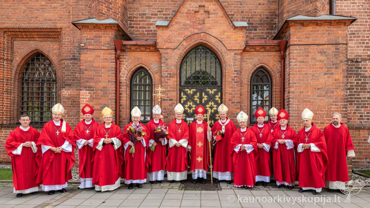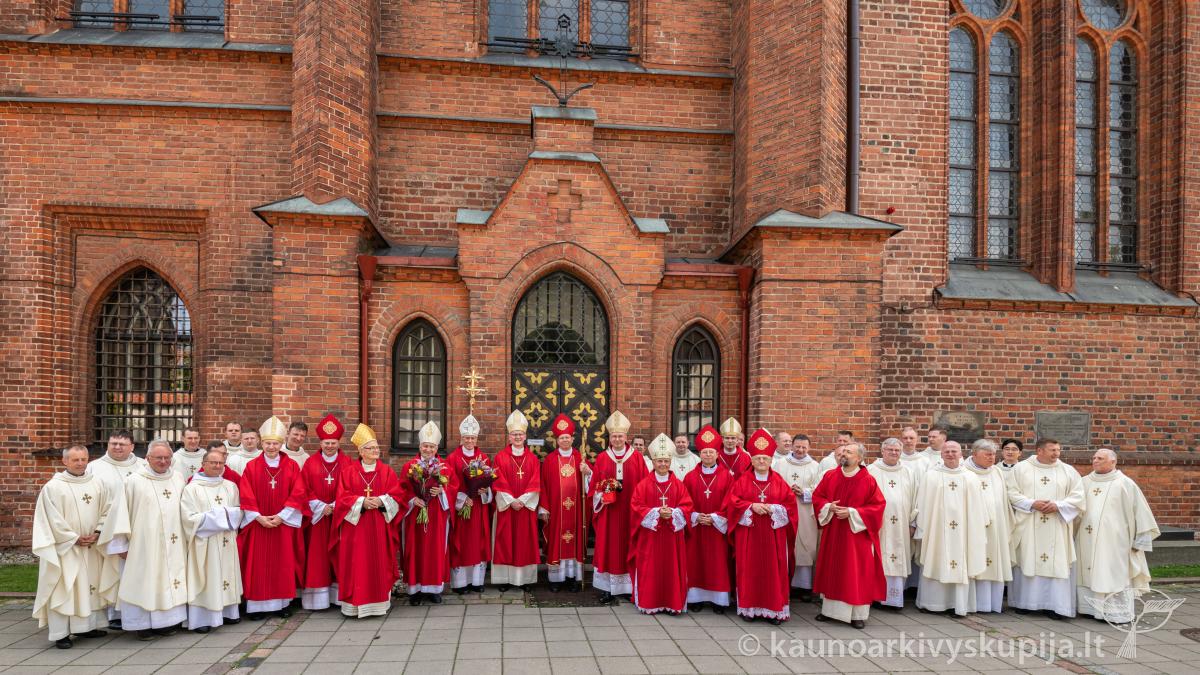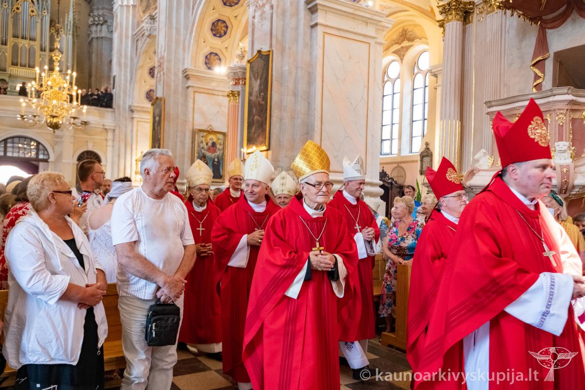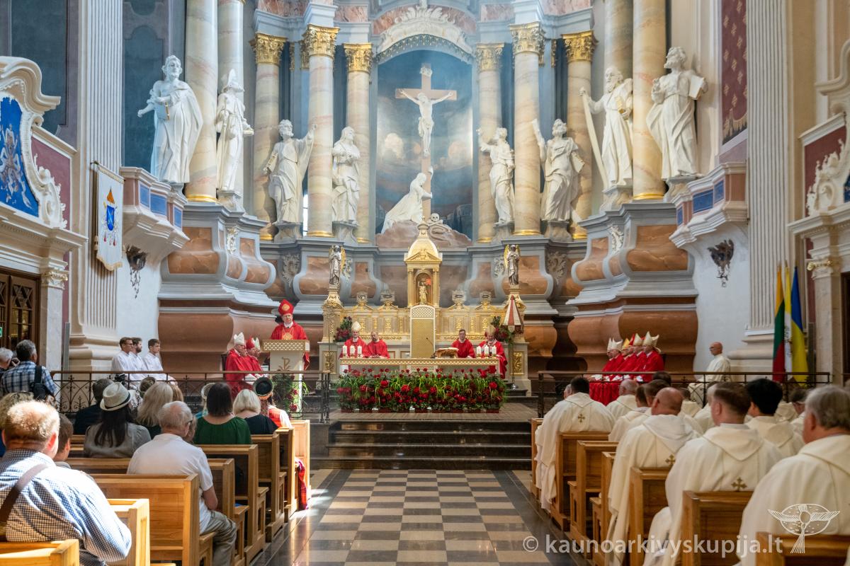 FOTOALBUMAS: Lietuvos sinodinio kelio vyskupijų etapo užbaigimo šventė. Popiežiaus ir vyskupų sveikinimai vyskupams Eugenijui Bartuliui ir Rimantui Norvilai jų konsekracijos 25-mečio proga, apaštališkojo nuncijaus arkivyskupo Petaro Antuno Rajičiaus kunigystės 35-mečio minėjimas. Kauno arkikatedra, 2022 m. birželio 29 d.