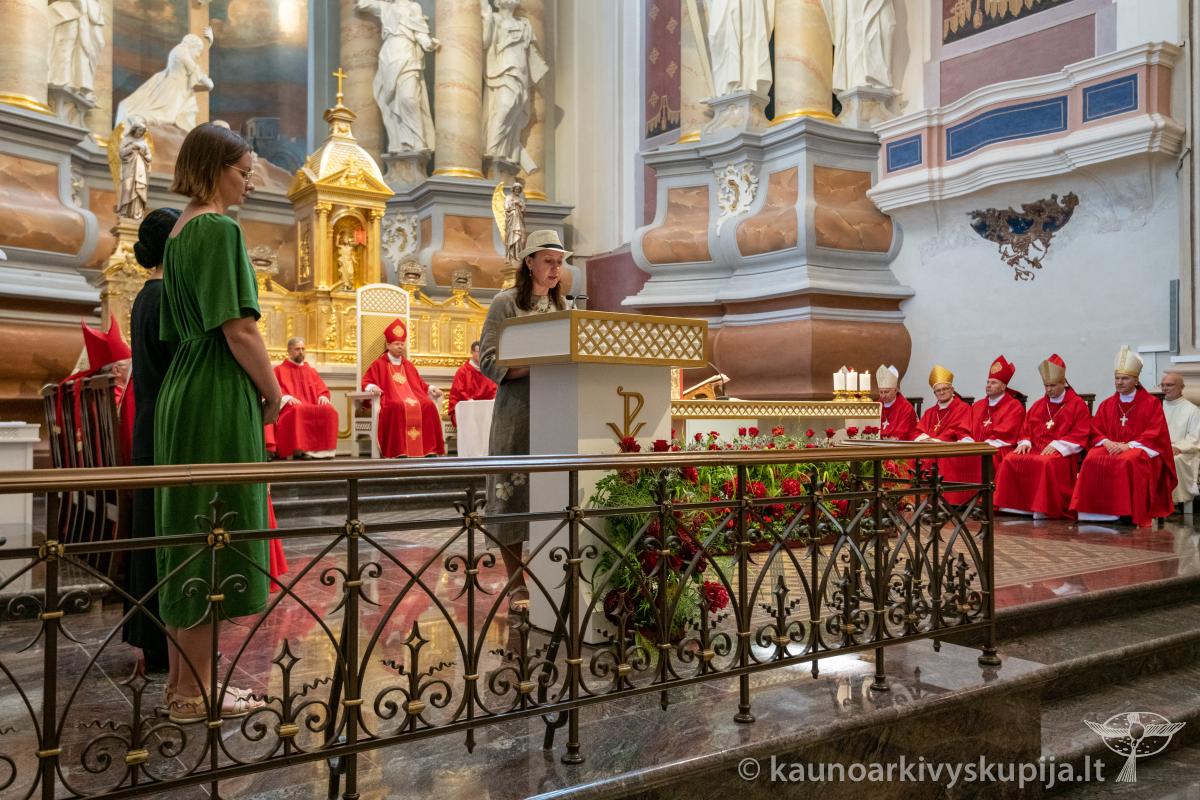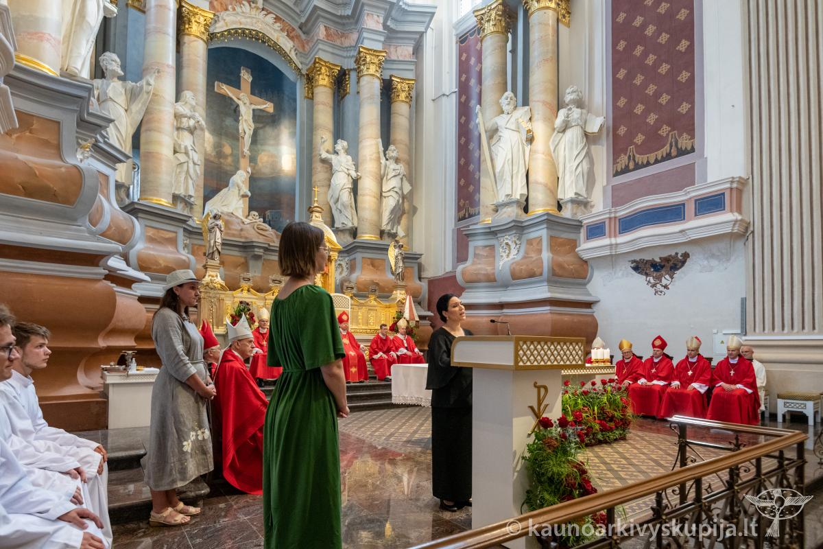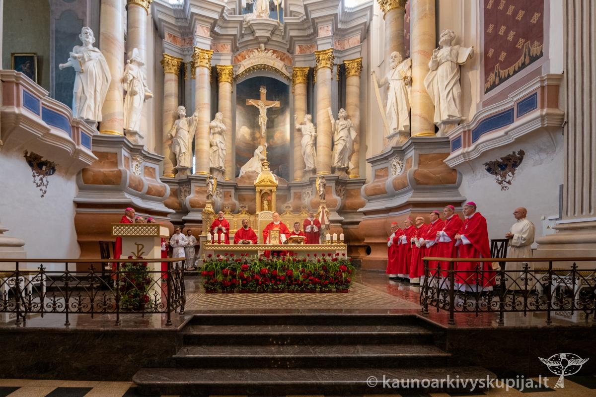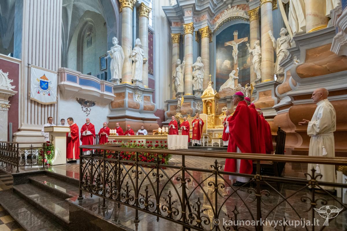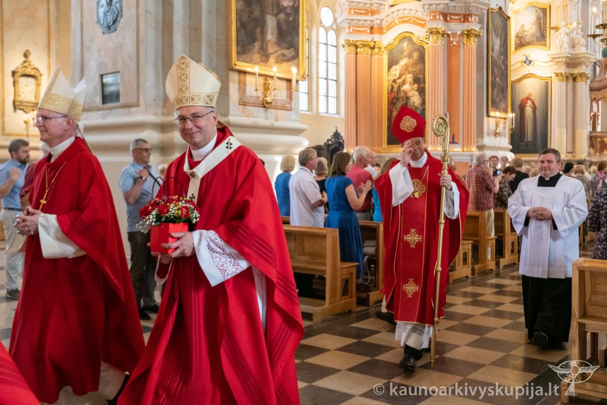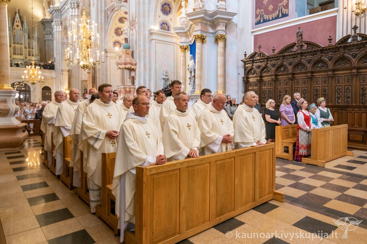 FOTOALBUMAS: Lietuvos sinodinio kelio vyskupijų etapo užbaigimo šventė. Popiežiaus ir vyskupų sveikinimai vyskupams Eugenijui Bartuliui ir Rimantui Norvilai jų konsekracijos 25-mečio proga, apaštališkojo nuncijaus arkivyskupo Petaro Antuno Rajičiaus kunigystės 35-mečio minėjimas. Kauno arkikatedra, 2022 m. birželio 29 d.