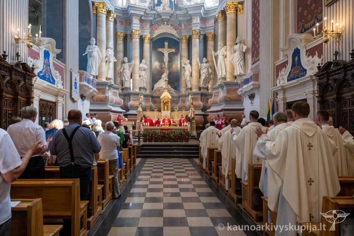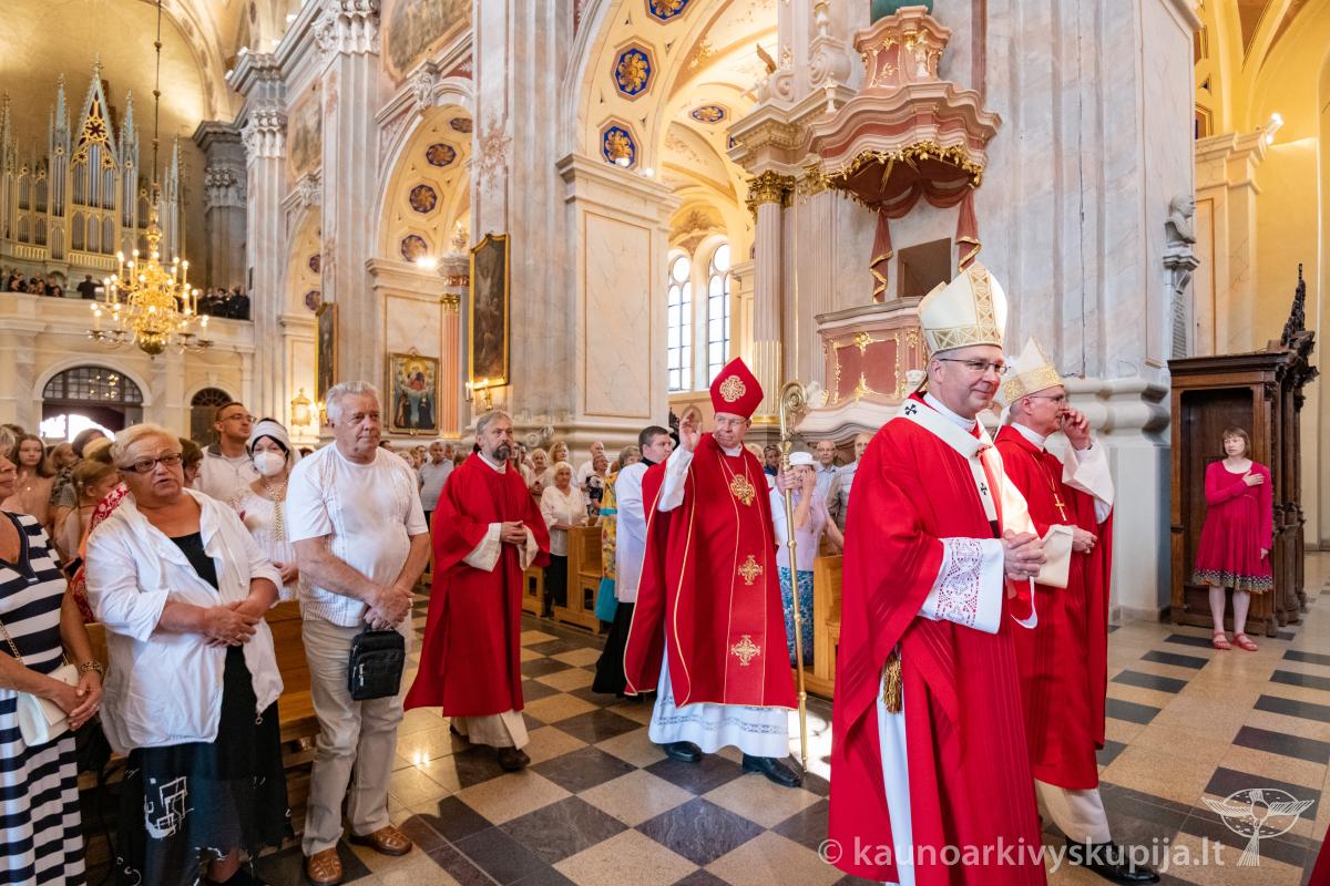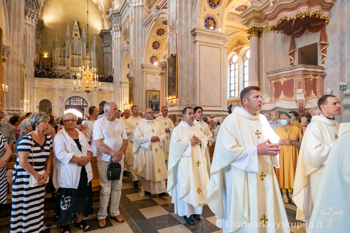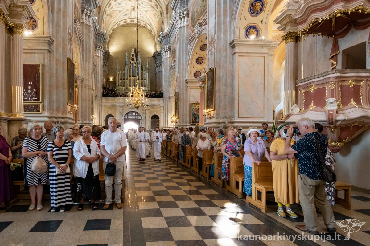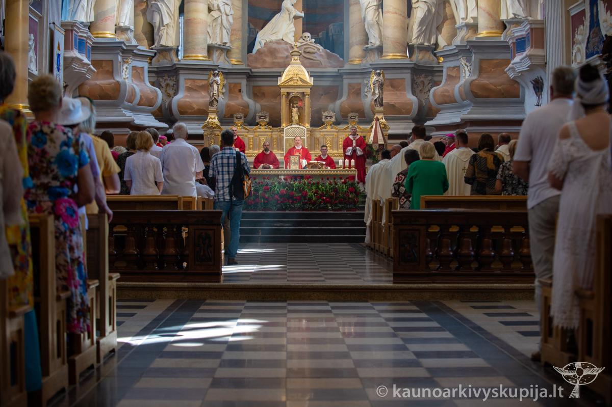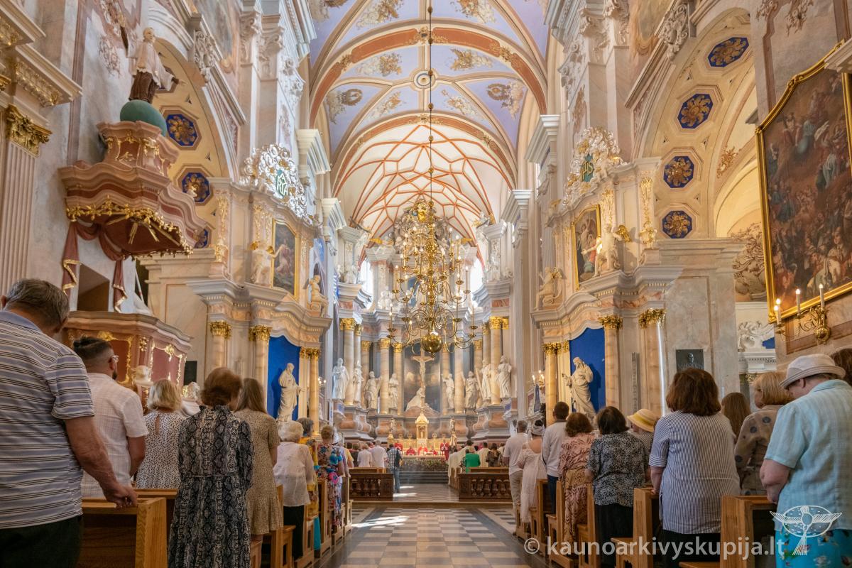 FOTOALBUMAS: Lietuvos sinodinio kelio vyskupijų etapo užbaigimo šventė. Popiežiaus ir vyskupų sveikinimai vyskupams Eugenijui Bartuliui ir Rimantui Norvilai jų konsekracijos 25-mečio proga, apaštališkojo nuncijaus arkivyskupo Petaro Antuno Rajičiaus kunigystės 35-mečio minėjimas. Kauno arkikatedra, 2022 m. birželio 29 d.