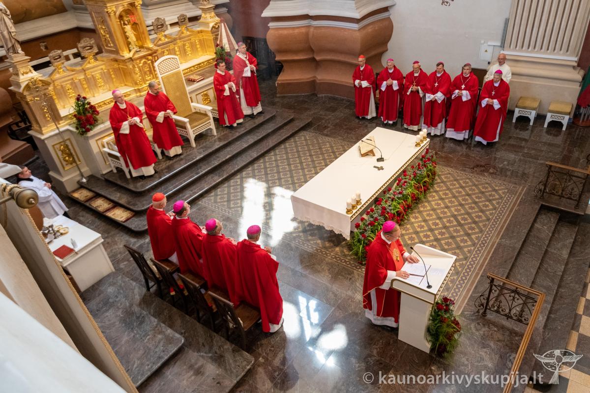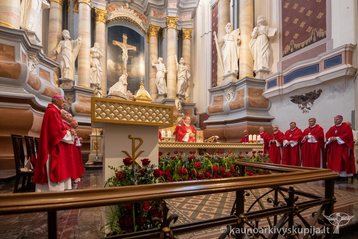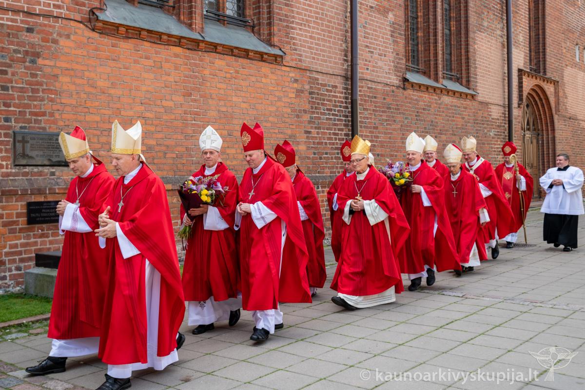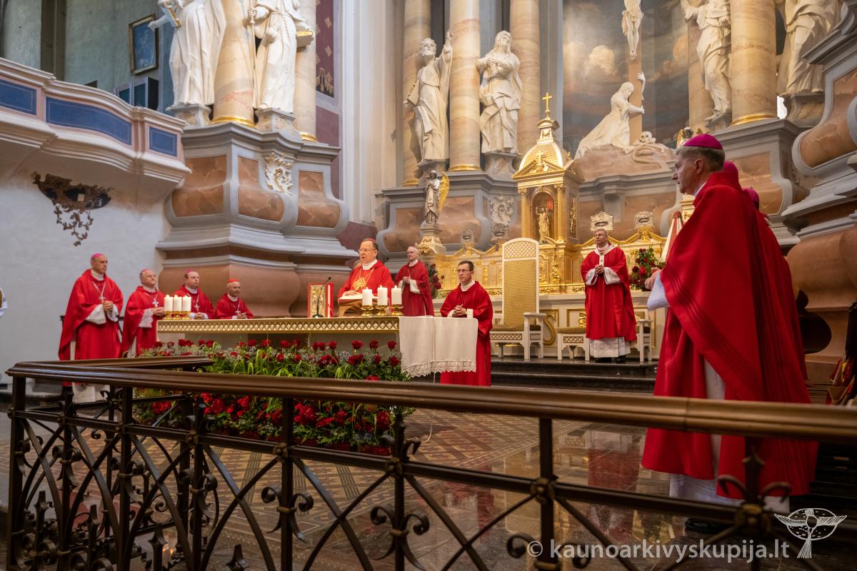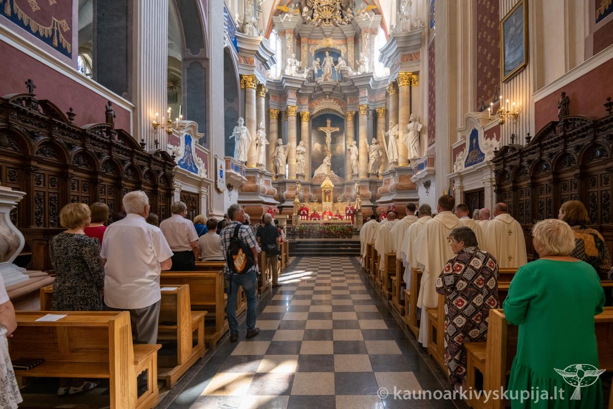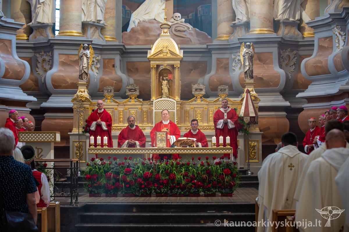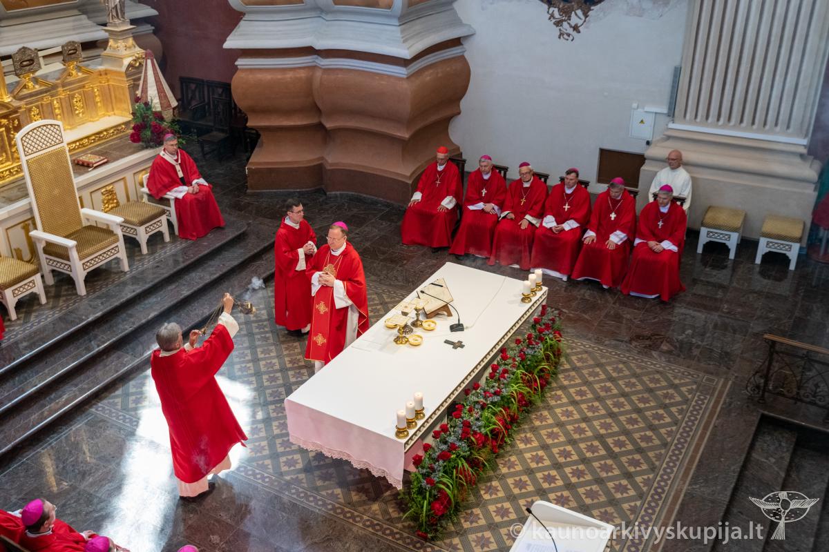 FOTOALBUMAS: Lietuvos sinodinio kelio vyskupijų etapo užbaigimo šventė. Popiežiaus ir vyskupų sveikinimai vyskupams Eugenijui Bartuliui ir Rimantui Norvilai jų konsekracijos 25-mečio proga, apaštališkojo nuncijaus arkivyskupo Petaro Antuno Rajičiaus kunigystės 35-mečio minėjimas. Kauno arkikatedra, 2022 m. birželio 29 d.
