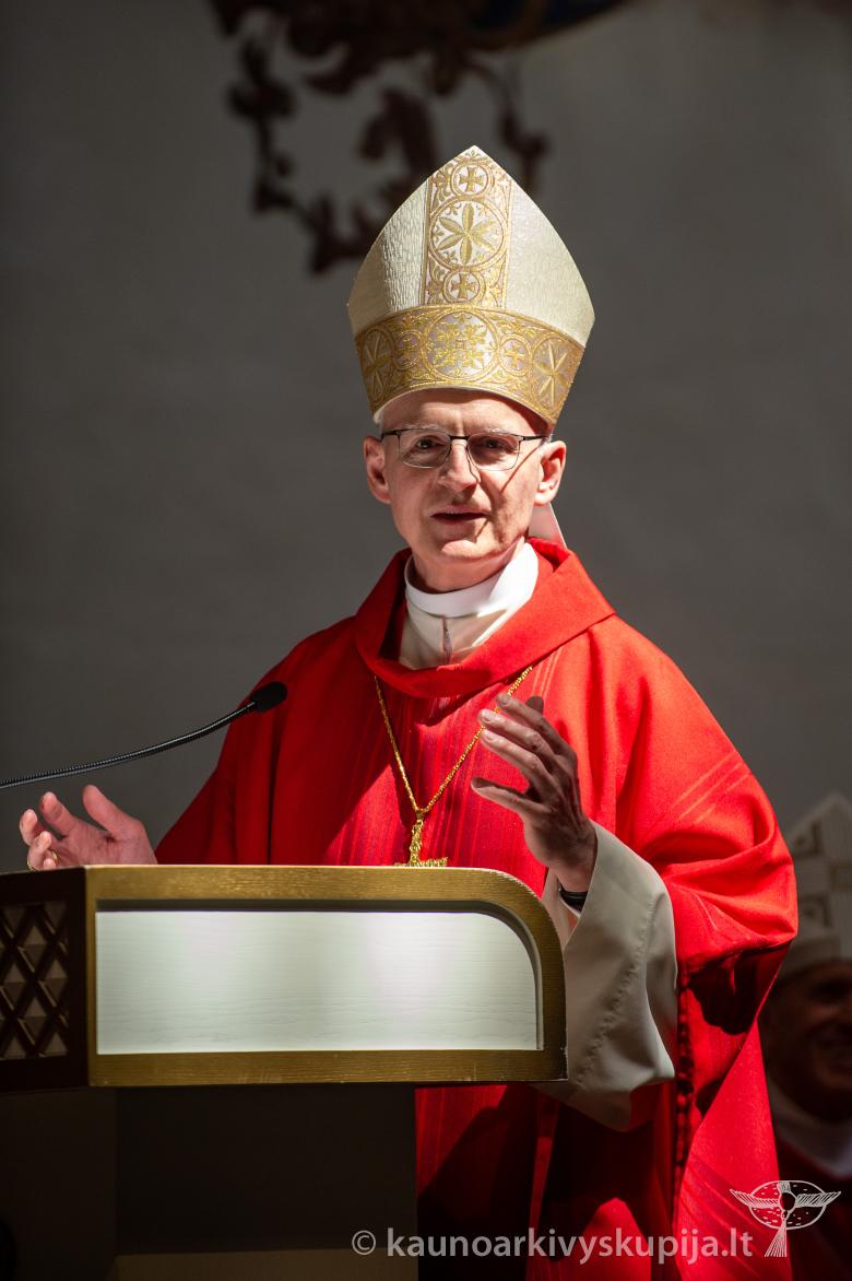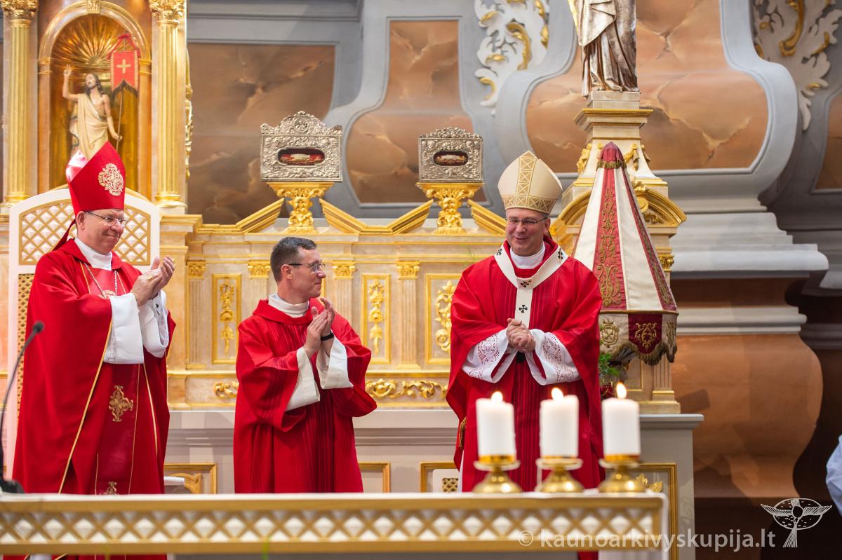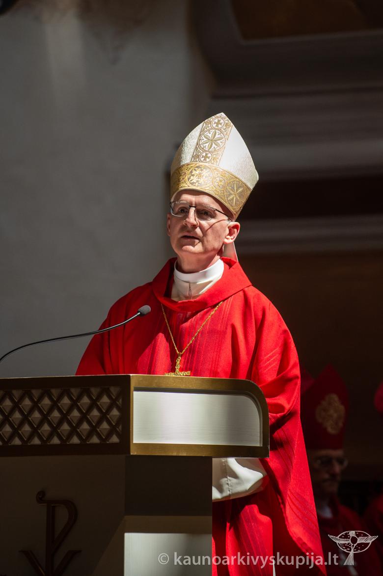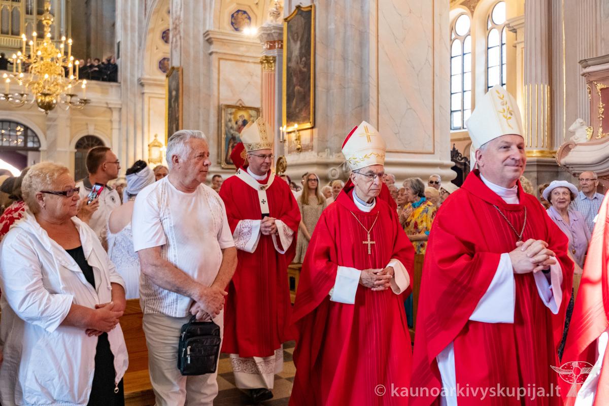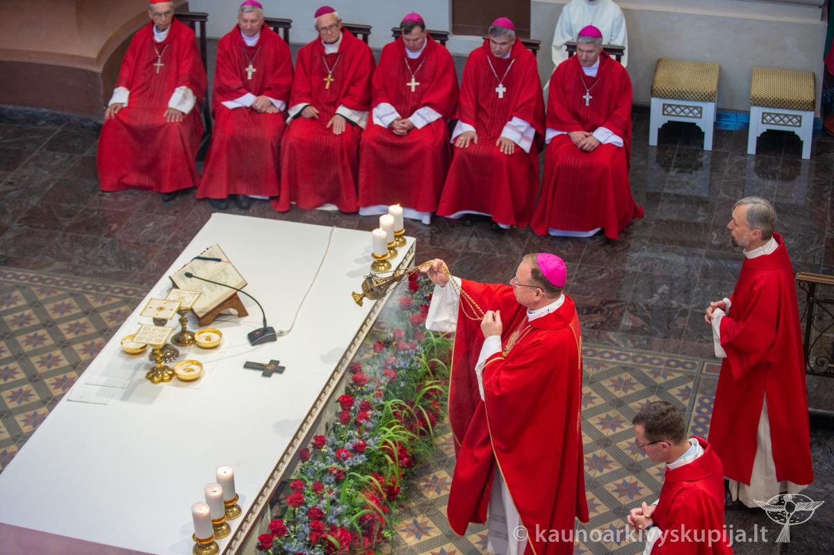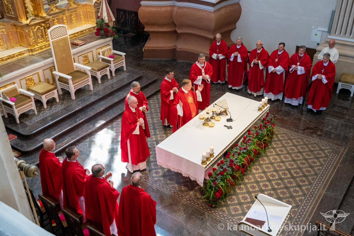 FOTOALBUMAS: Lietuvos sinodinio kelio vyskupijų etapo užbaigimo šventė. Popiežiaus ir vyskupų sveikinimai vyskupams Eugenijui Bartuliui ir Rimantui Norvilai jų konsekracijos 25-mečio proga, apaštališkojo nuncijaus arkivyskupo Petaro Antuno Rajičiaus kunigystės 35-mečio minėjimas. Kauno arkikatedra, 2022 m. birželio 29 d.