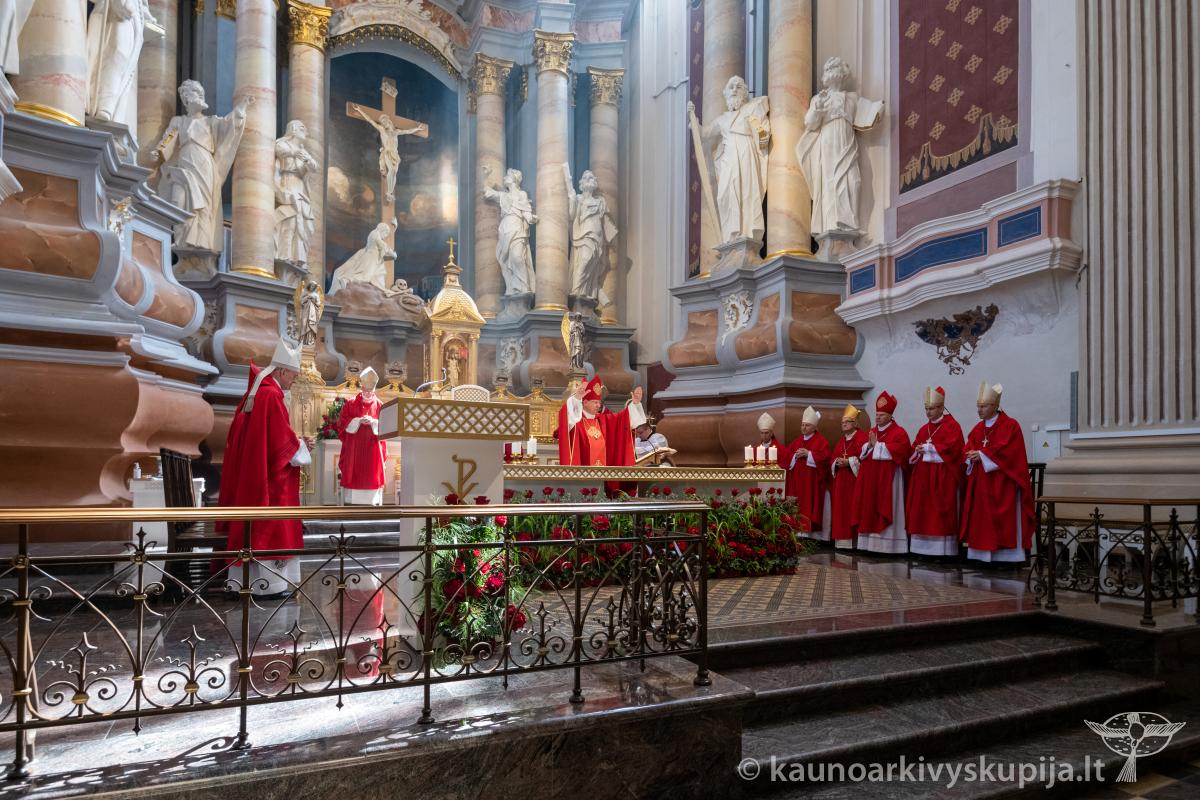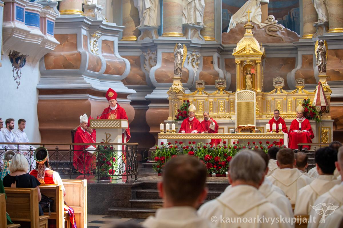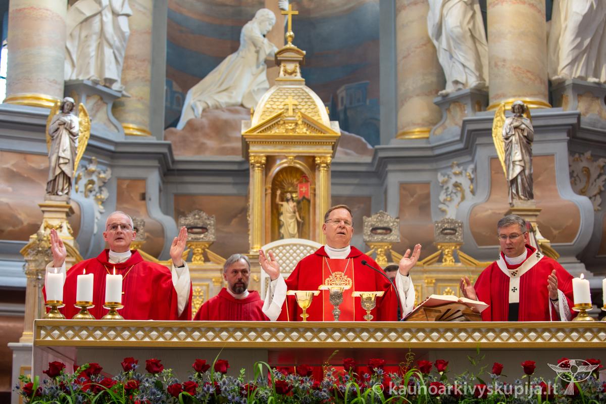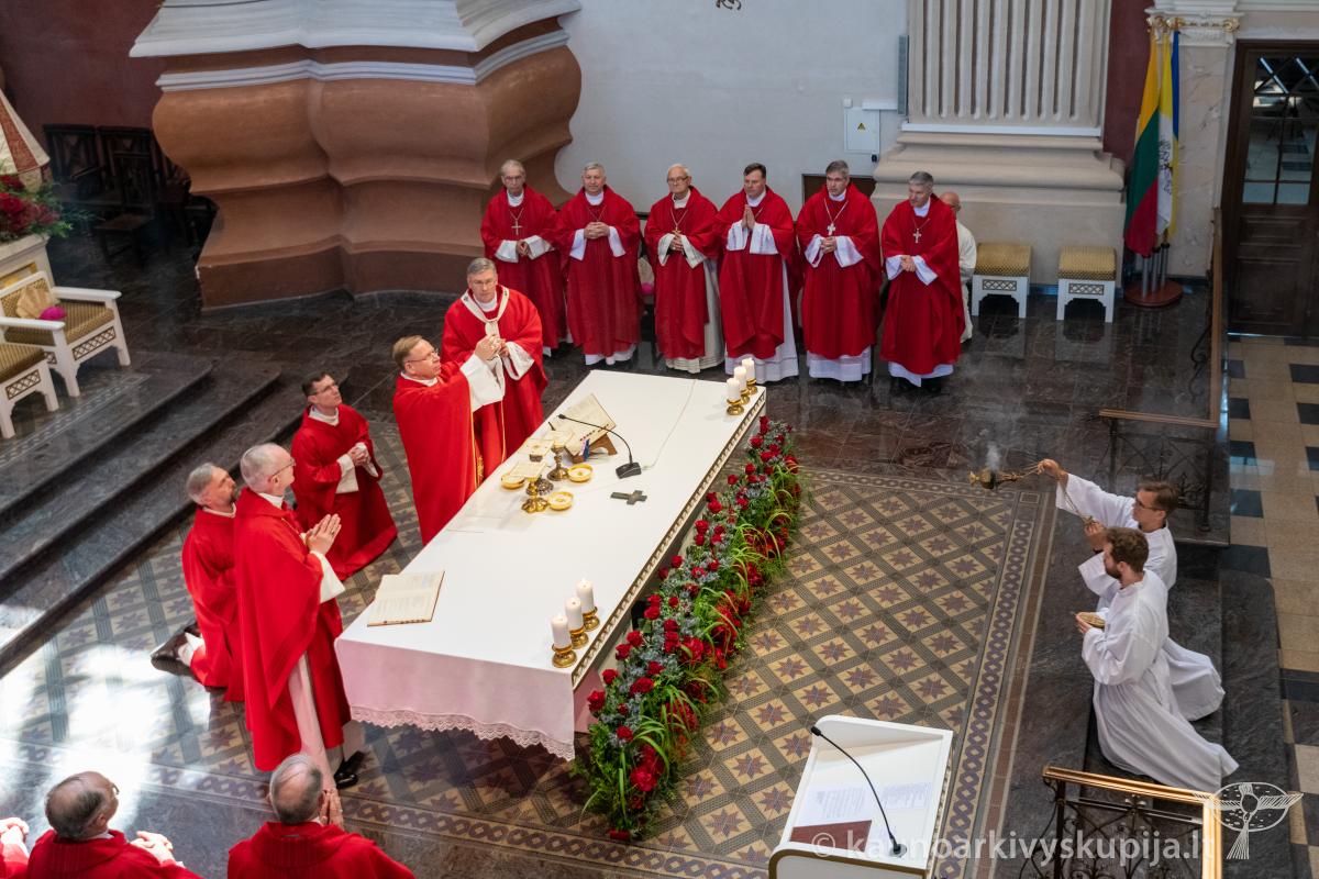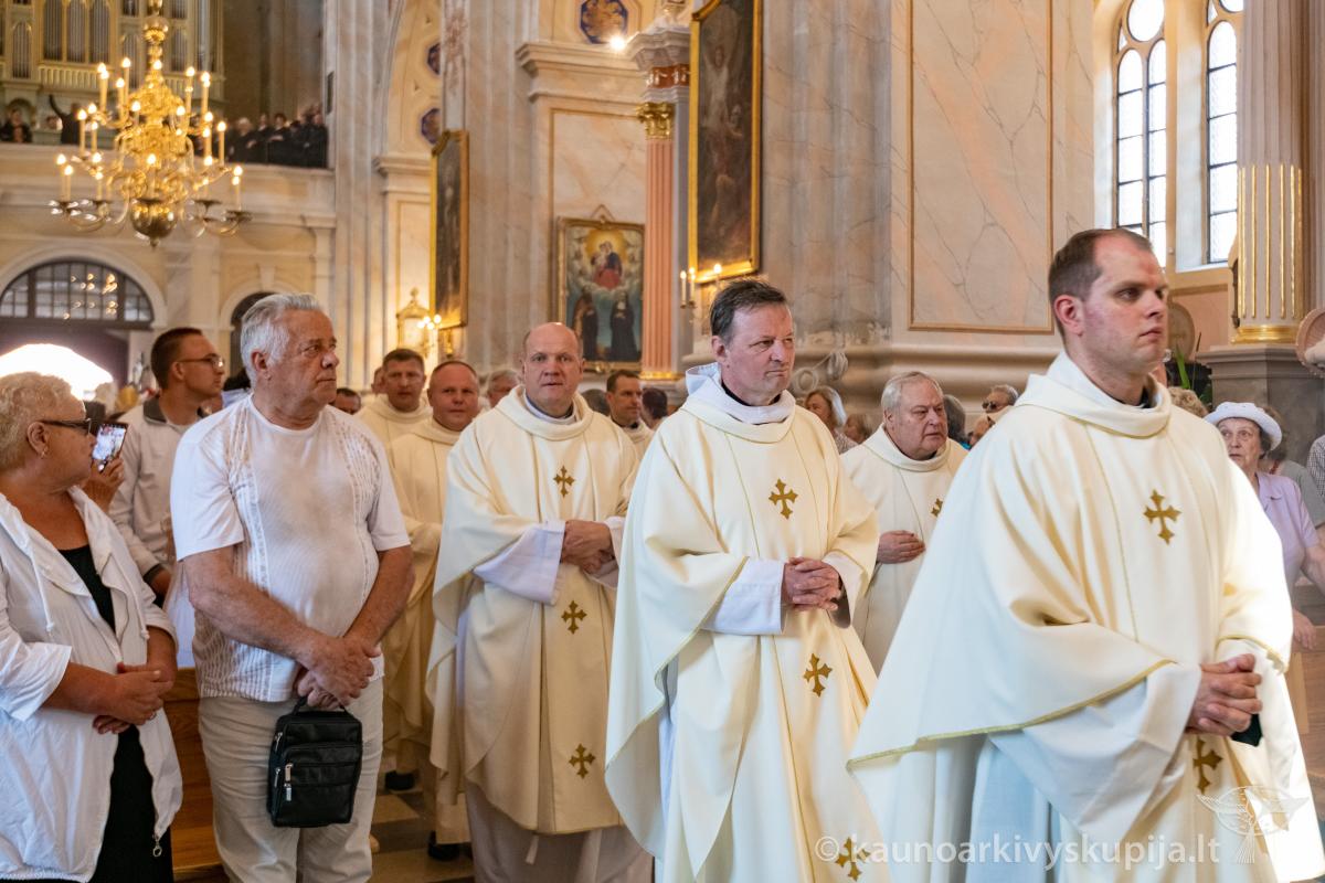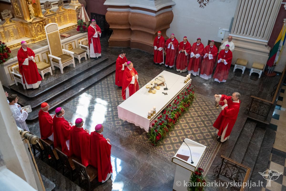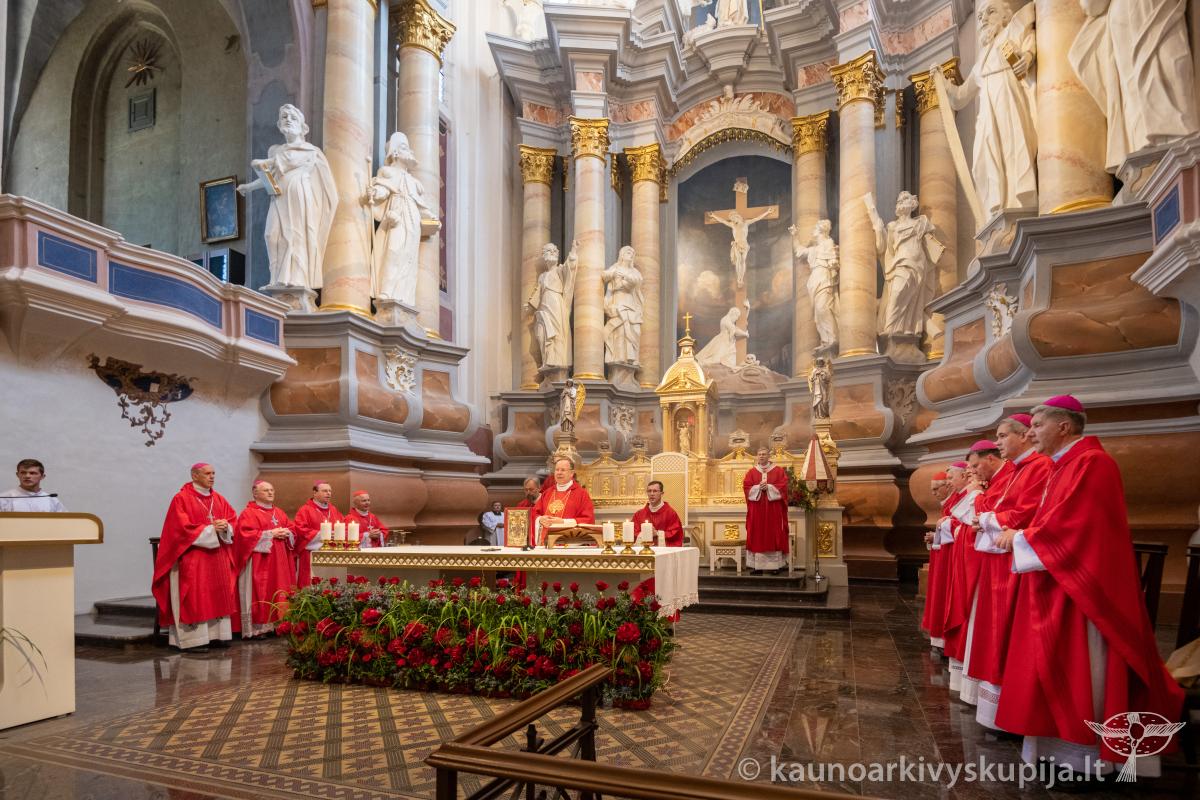 FOTOALBUMAS: Lietuvos sinodinio kelio vyskupijų etapo užbaigimo šventė. Popiežiaus ir vyskupų sveikinimai vyskupams Eugenijui Bartuliui ir Rimantui Norvilai jų konsekracijos 25-mečio proga, apaštališkojo nuncijaus arkivyskupo Petaro Antuno Rajičiaus kunigystės 35-mečio minėjimas. Kauno arkikatedra, 2022 m. birželio 29 d.