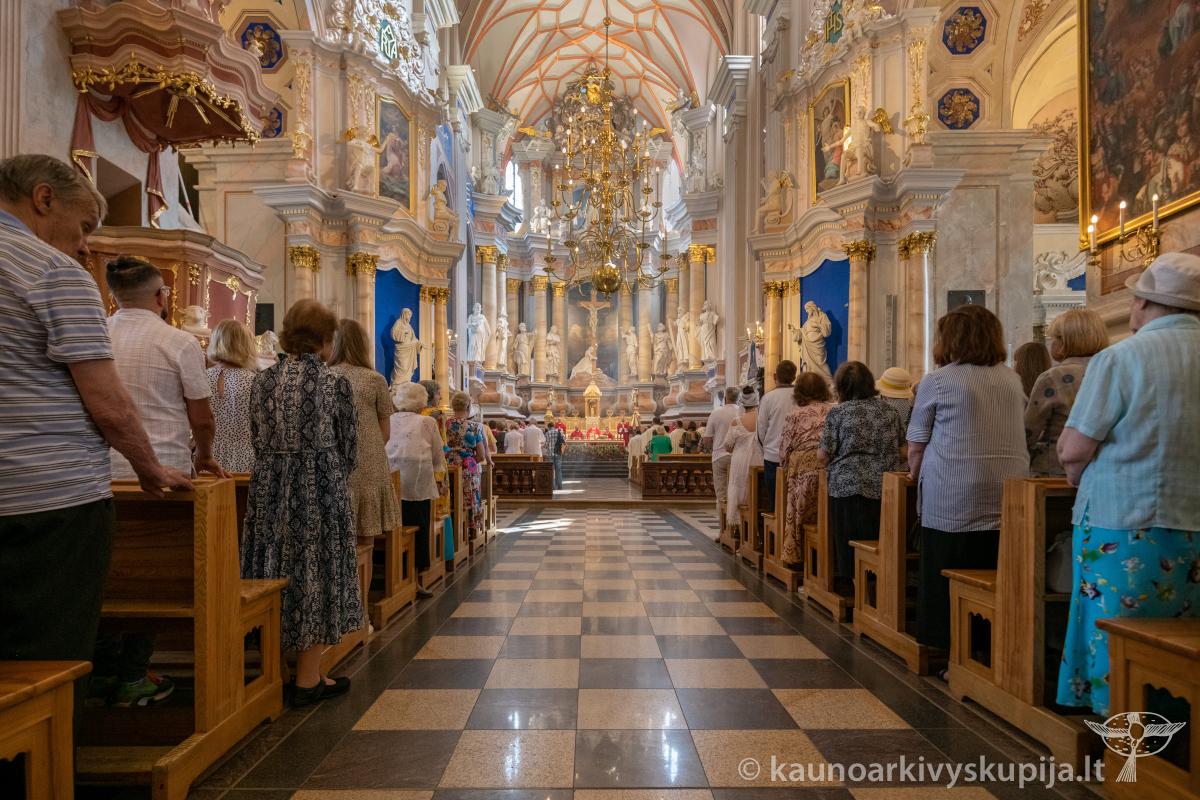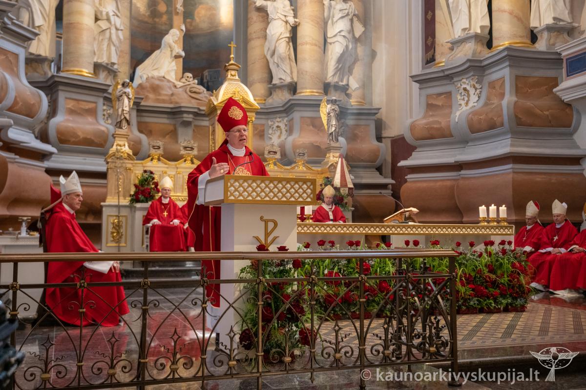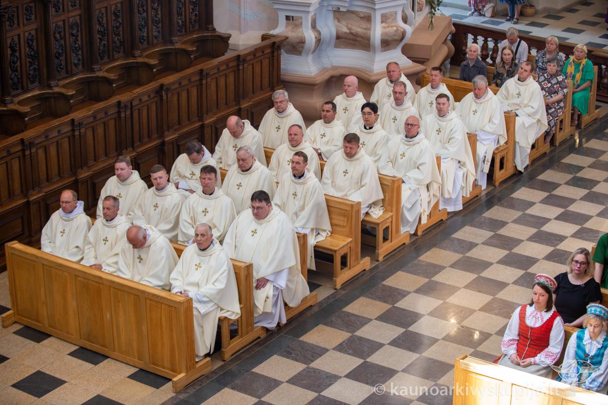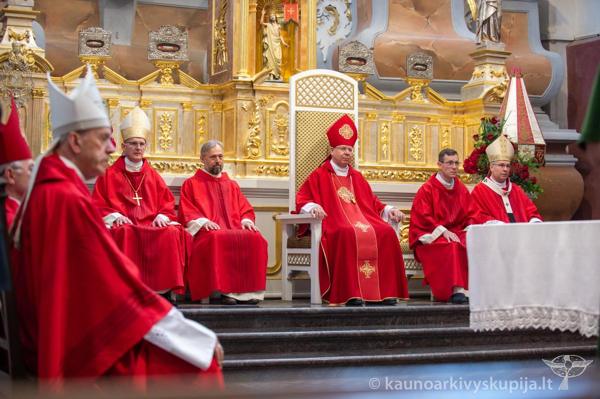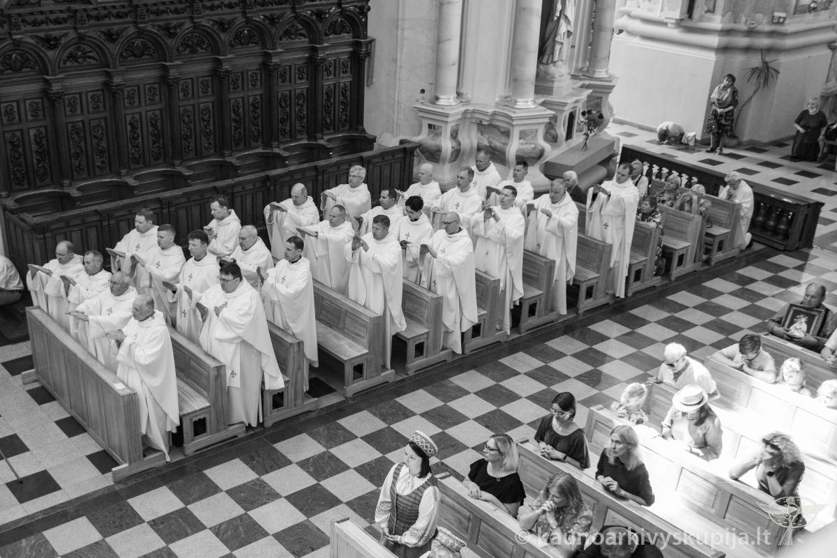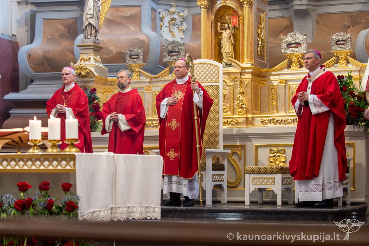FOTOALBUMAS: Lietuvos sinodinio kelio vyskupijų etapo užbaigimo šventė. Popiežiaus ir vyskupų sveikinimai vyskupams Eugenijui Bartuliui ir Rimantui Norvilai jų konsekracijos 25-mečio proga, apaštališkojo nuncijaus arkivyskupo Petaro Antuno Rajičiaus kunigystės 35-mečio minėjimas. Kauno arkikatedra, 2022 m. birželio 29 d.