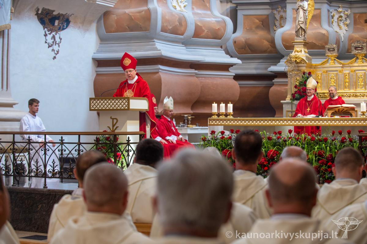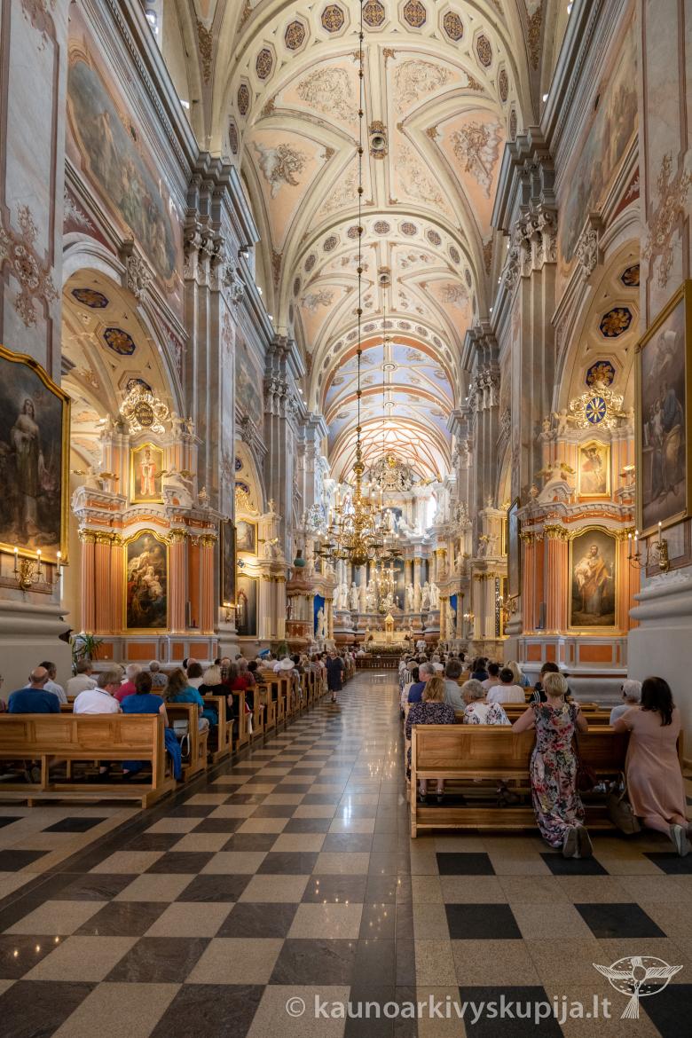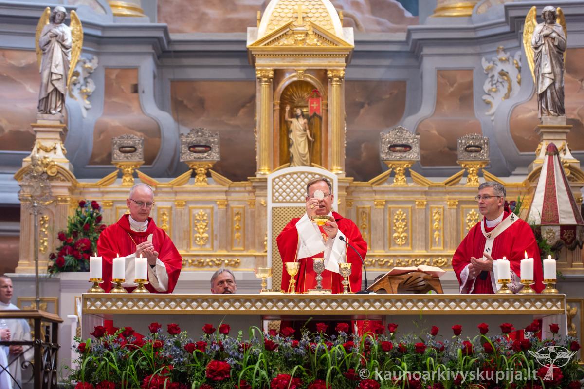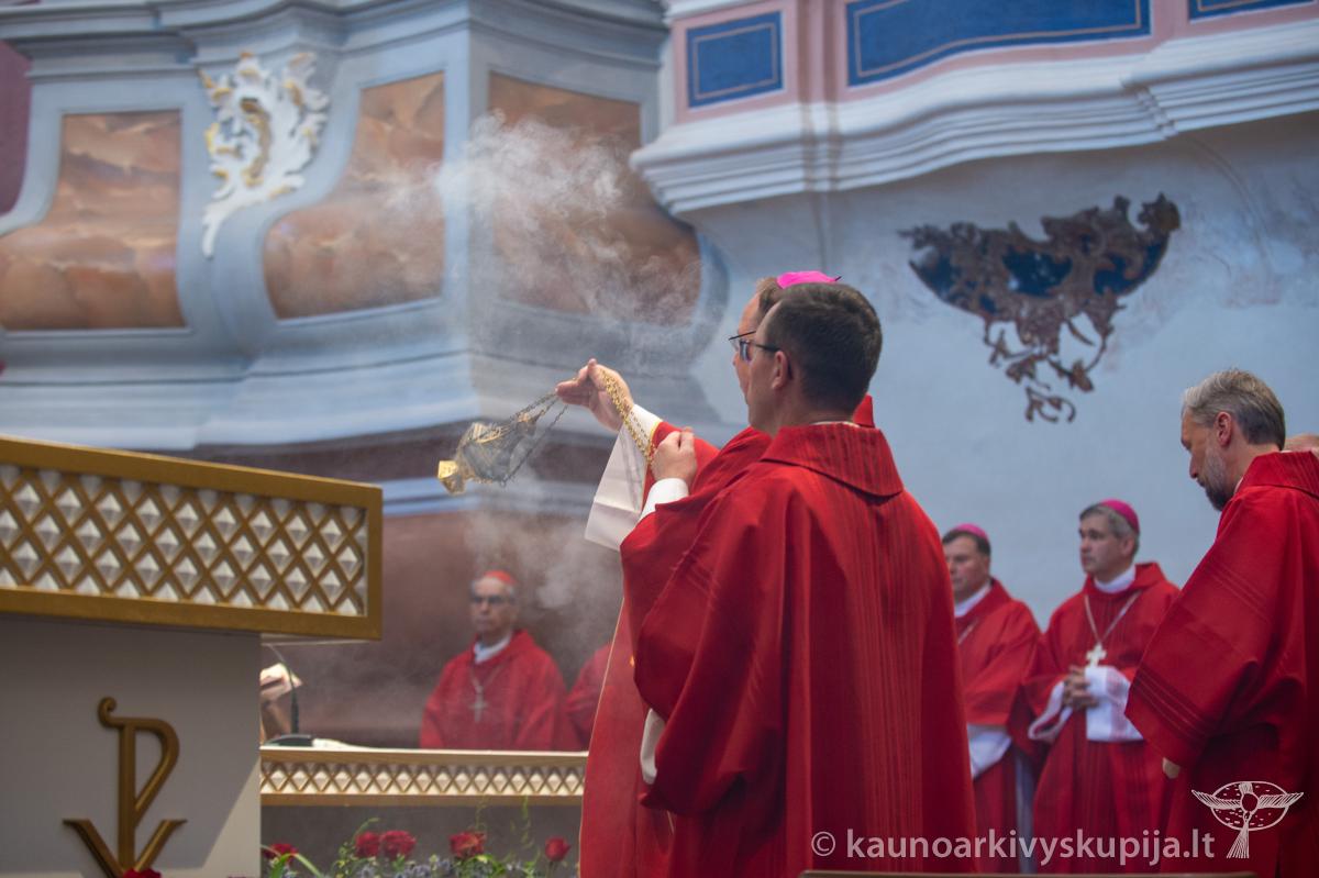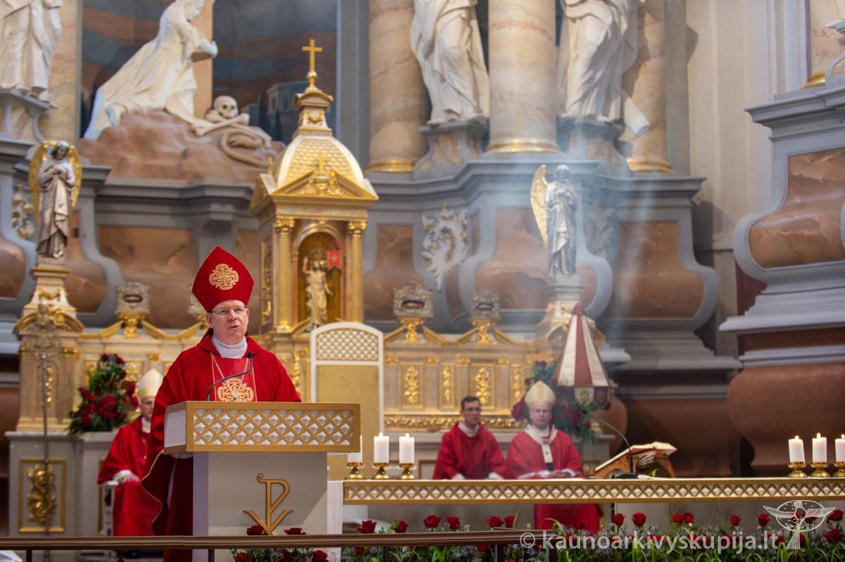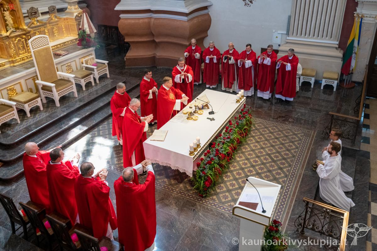 FOTOALBUMAS: Lietuvos sinodinio kelio vyskupijų etapo užbaigimo šventė. Popiežiaus ir vyskupų sveikinimai vyskupams Eugenijui Bartuliui ir Rimantui Norvilai jų konsekracijos 25-mečio proga, apaštališkojo nuncijaus arkivyskupo Petaro Antuno Rajičiaus kunigystės 35-mečio minėjimas. Kauno arkikatedra, 2022 m. birželio 29 d.