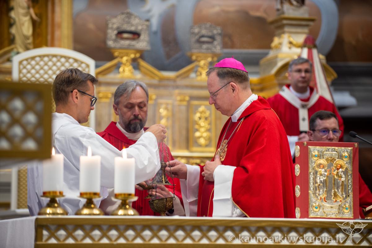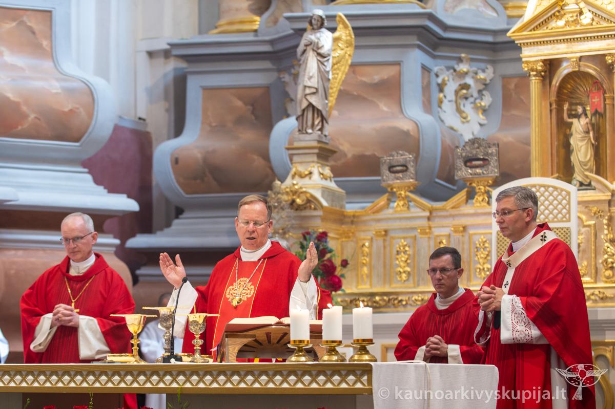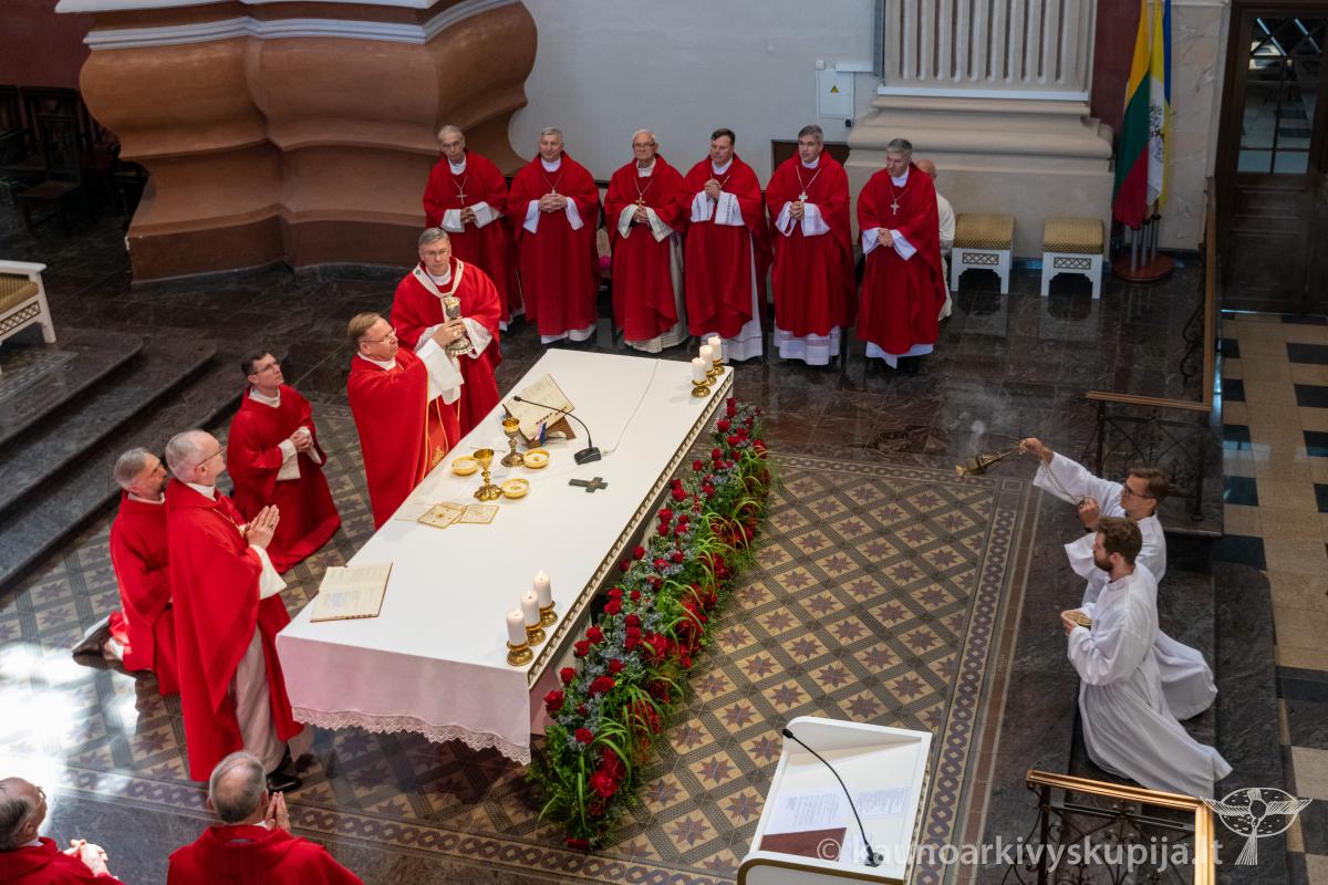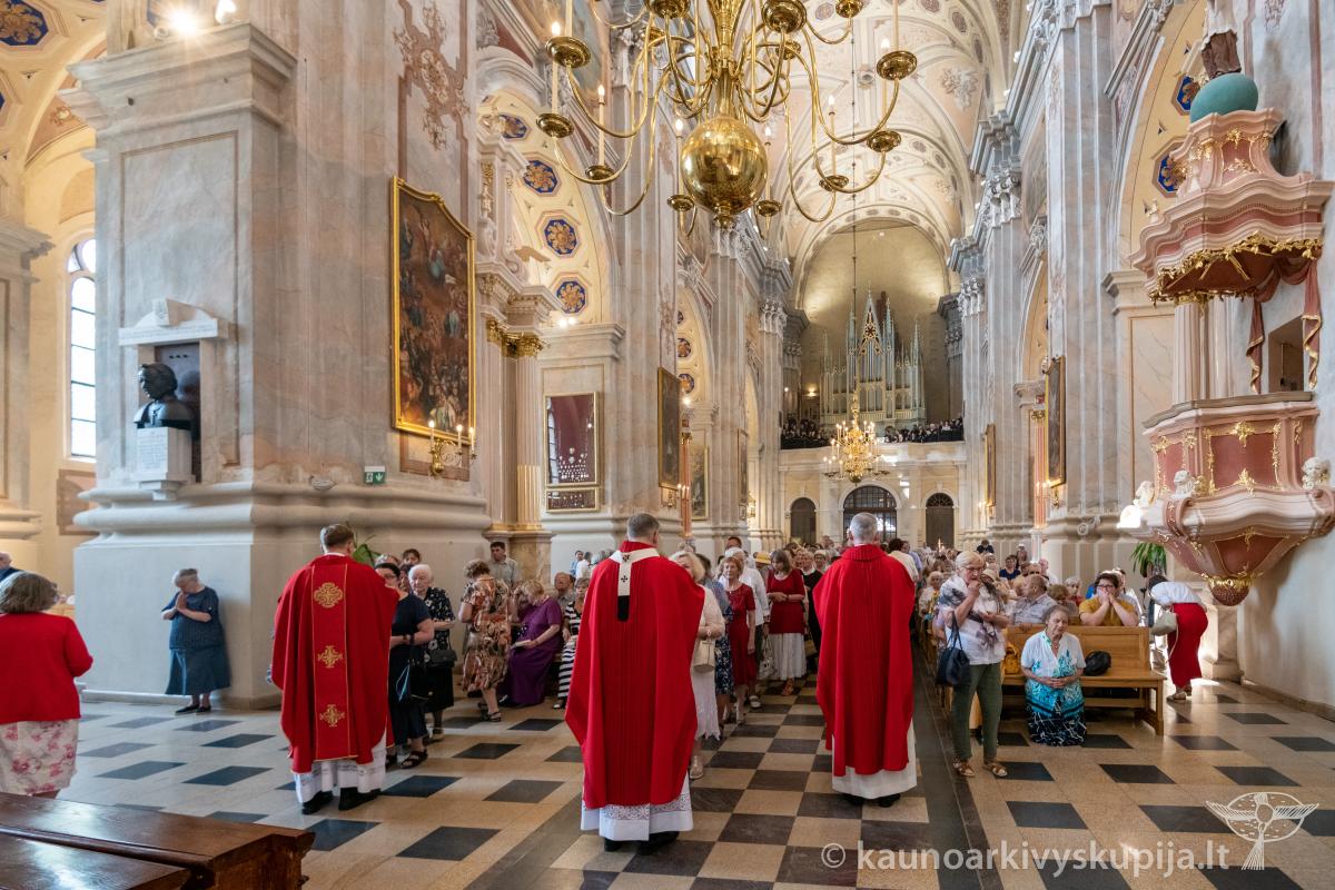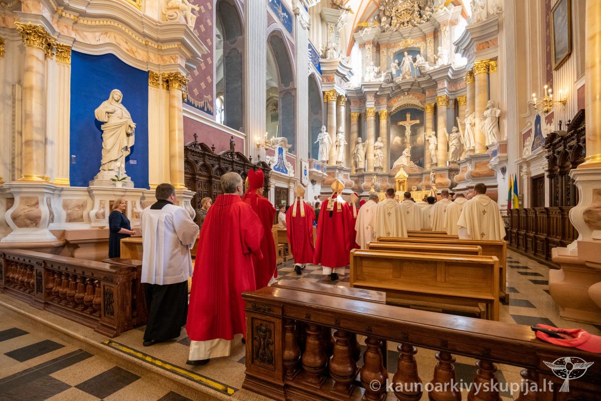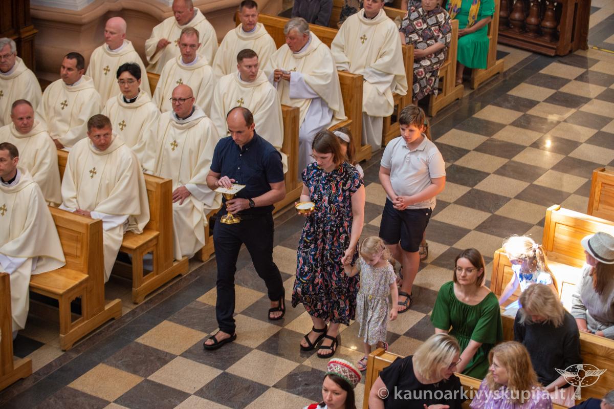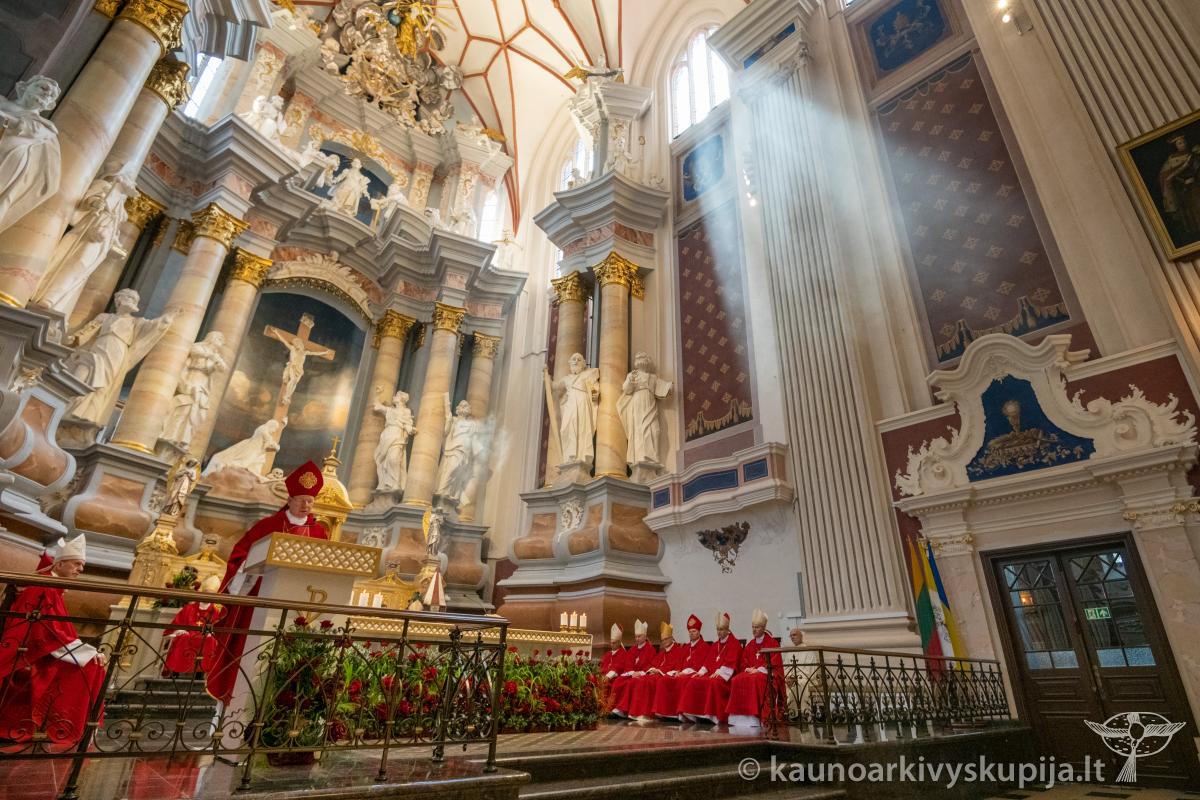 FOTOALBUMAS: Lietuvos sinodinio kelio vyskupijų etapo užbaigimo šventė. Popiežiaus ir vyskupų sveikinimai vyskupams Eugenijui Bartuliui ir Rimantui Norvilai jų konsekracijos 25-mečio proga, apaštališkojo nuncijaus arkivyskupo Petaro Antuno Rajičiaus kunigystės 35-mečio minėjimas. Kauno arkikatedra, 2022 m. birželio 29 d.