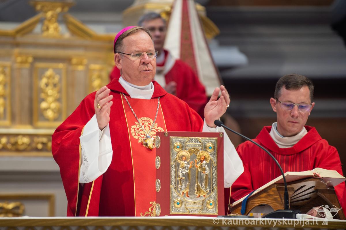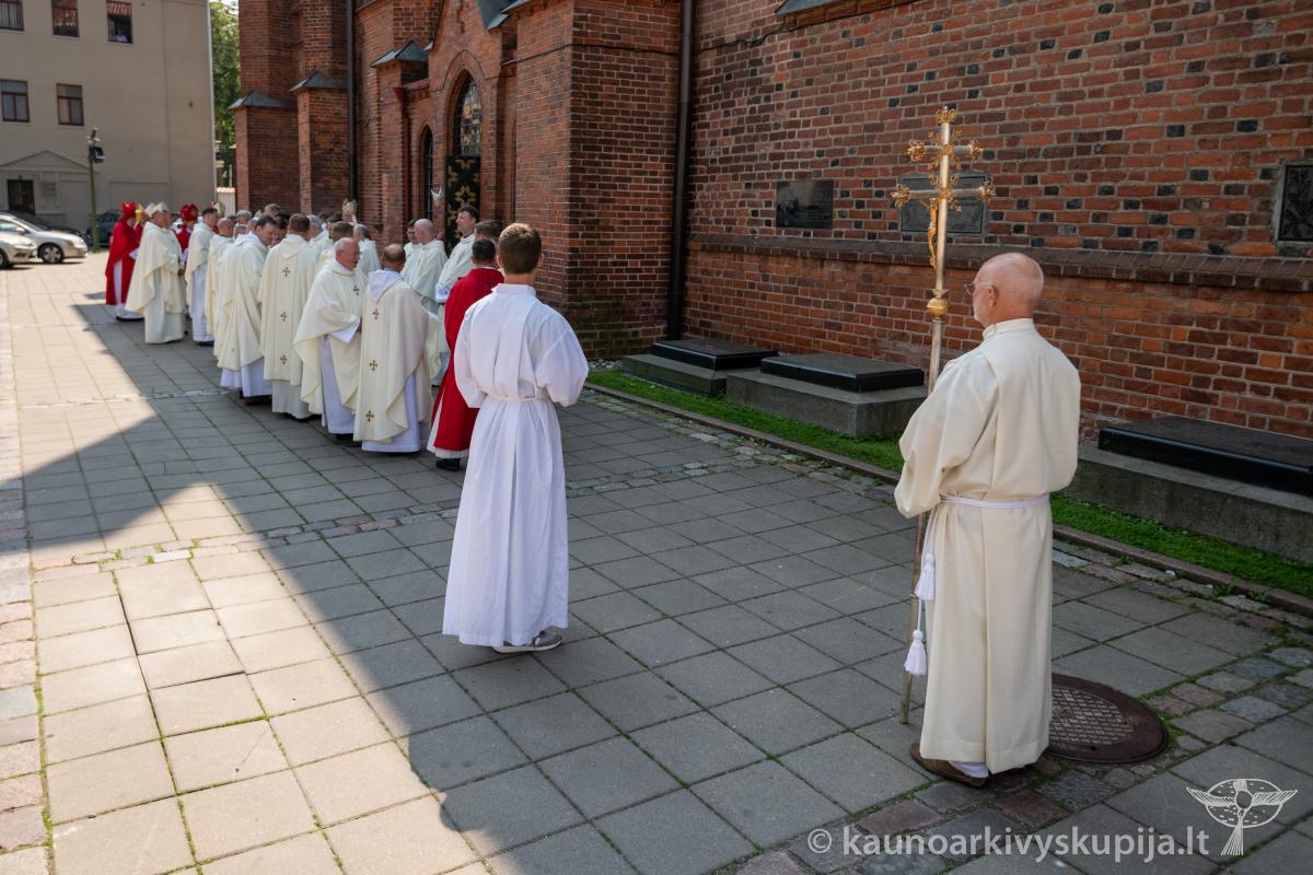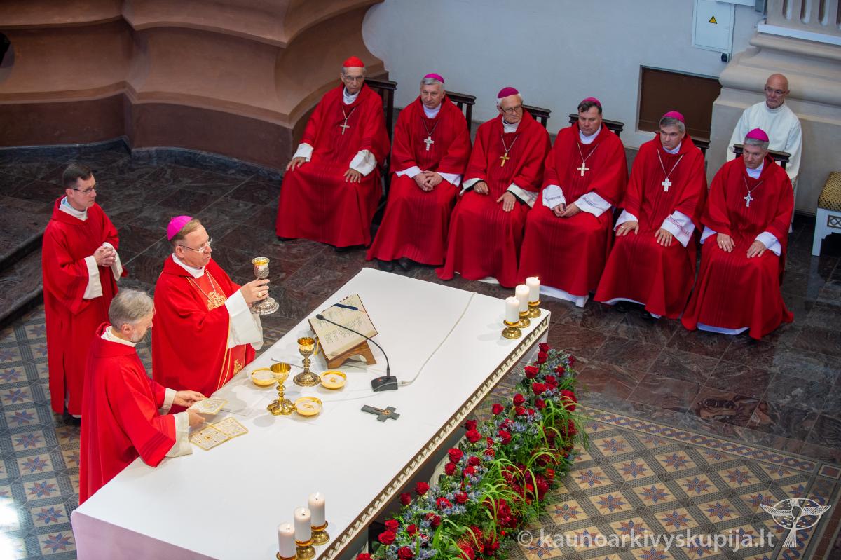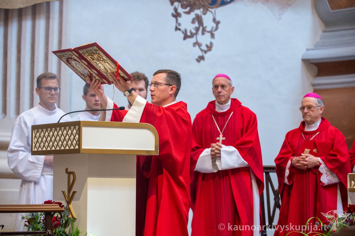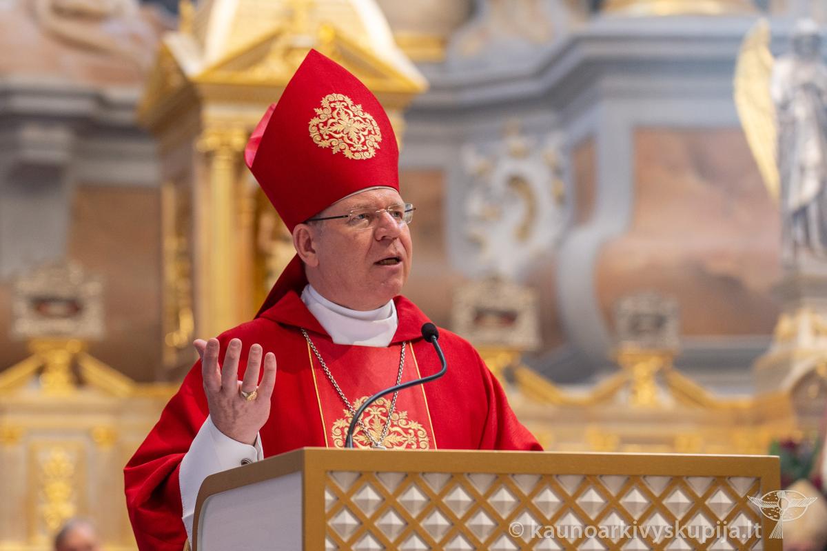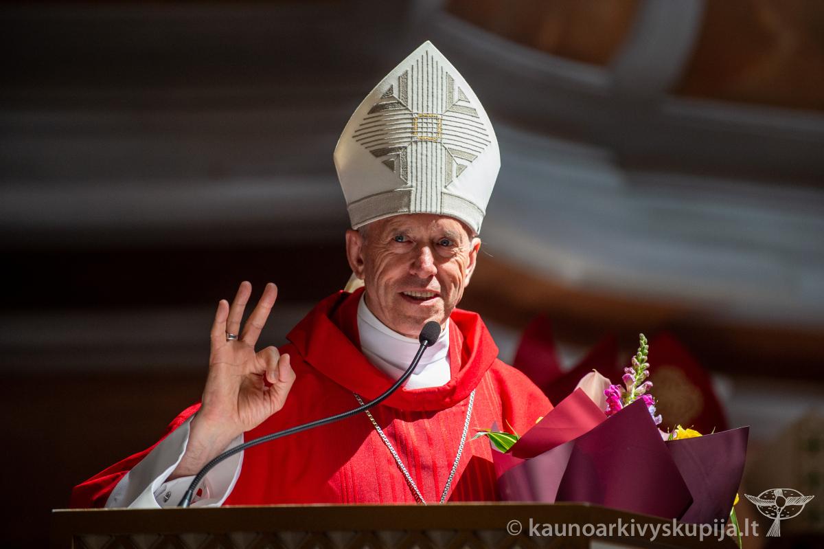 FOTOALBUMAS: Lietuvos sinodinio kelio vyskupijų etapo užbaigimo šventė. Popiežiaus ir vyskupų sveikinimai vyskupams Eugenijui Bartuliui ir Rimantui Norvilai jų konsekracijos 25-mečio proga, apaštališkojo nuncijaus arkivyskupo Petaro Antuno Rajičiaus kunigystės 35-mečio minėjimas. Kauno arkikatedra, 2022 m. birželio 29 d.
