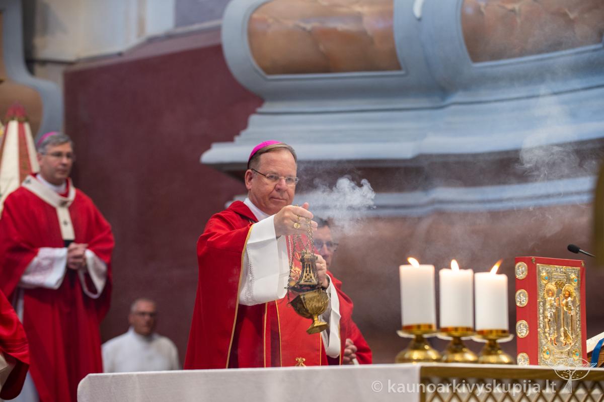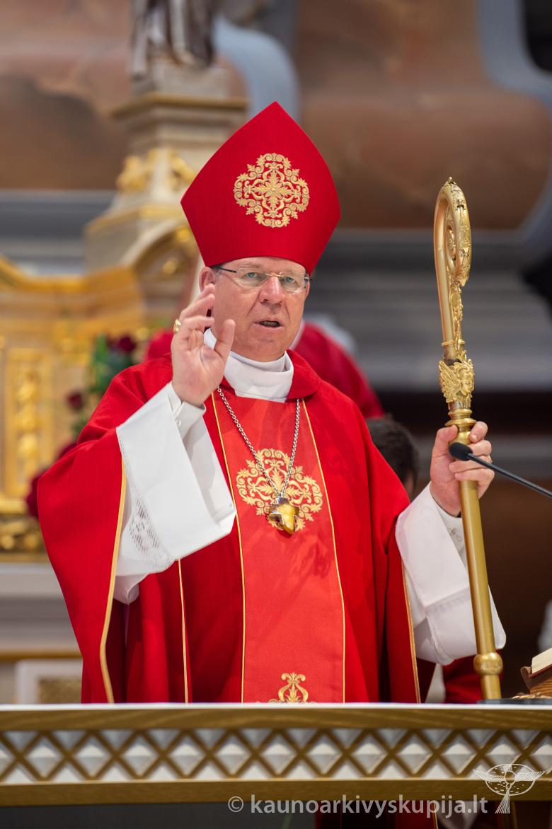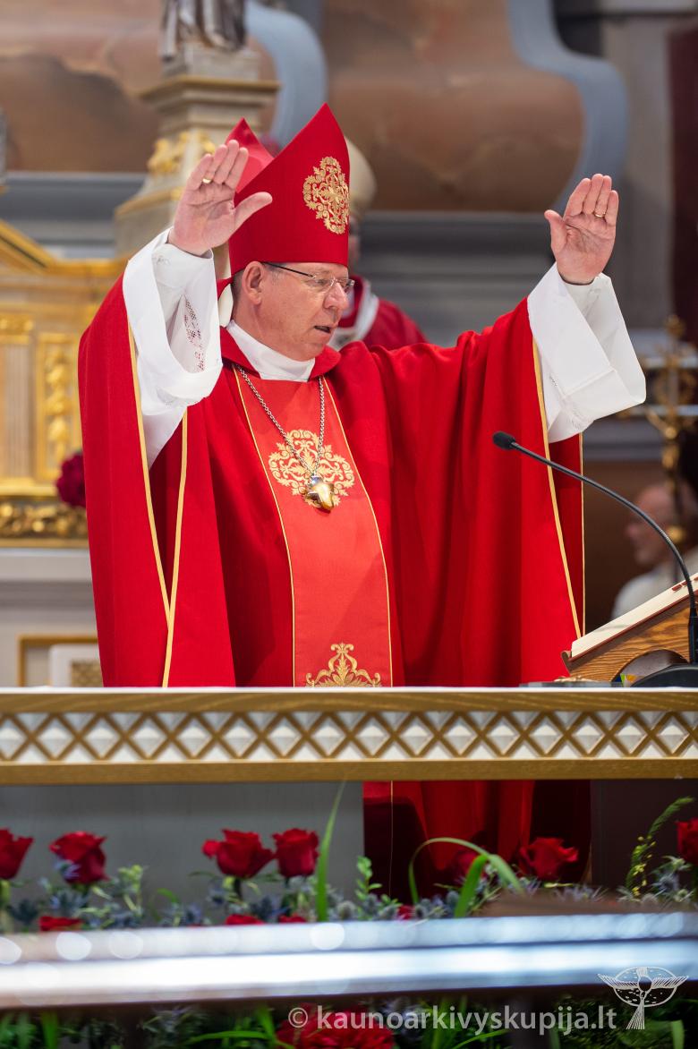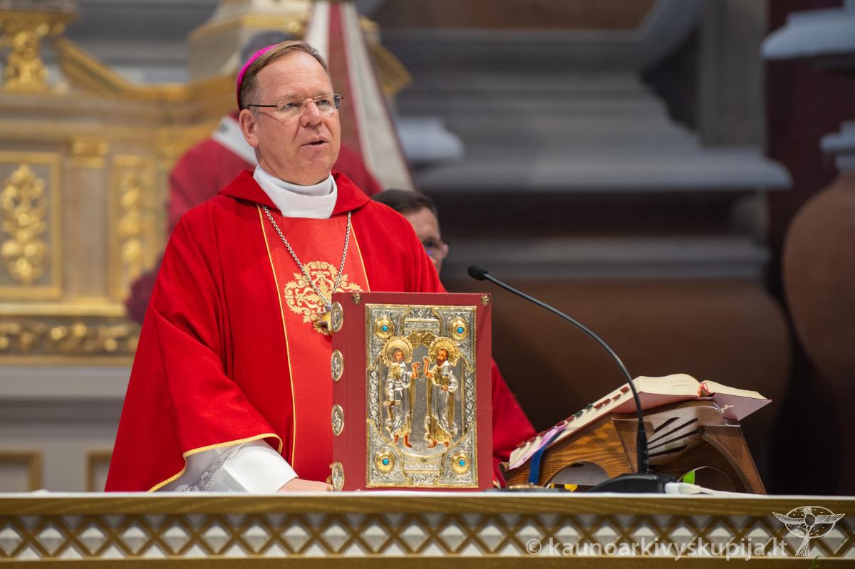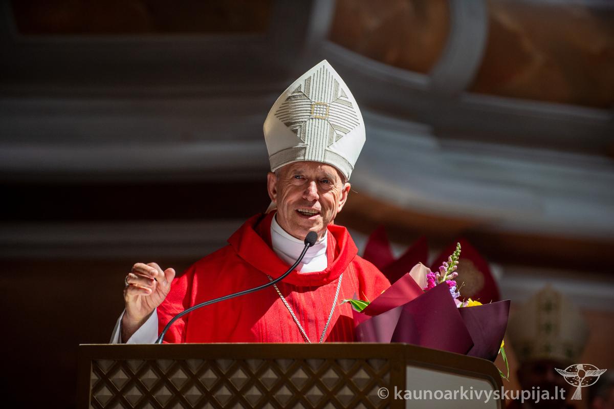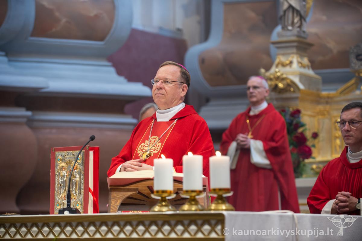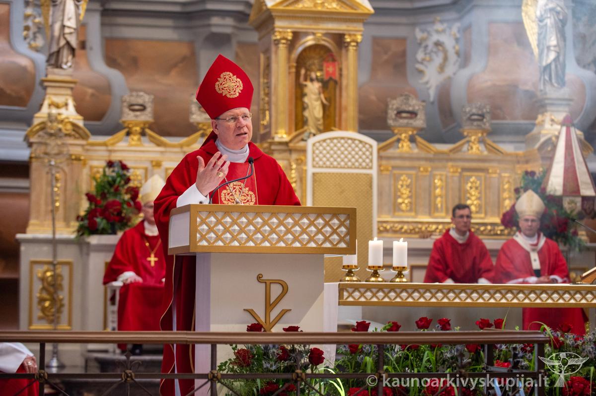 FOTOALBUMAS: Lietuvos sinodinio kelio vyskupijų etapo užbaigimo šventė. Popiežiaus ir vyskupų sveikinimai vyskupams Eugenijui Bartuliui ir Rimantui Norvilai jų konsekracijos 25-mečio proga, apaštališkojo nuncijaus arkivyskupo Petaro Antuno Rajičiaus kunigystės 35-mečio minėjimas. Kauno arkikatedra, 2022 m. birželio 29 d.