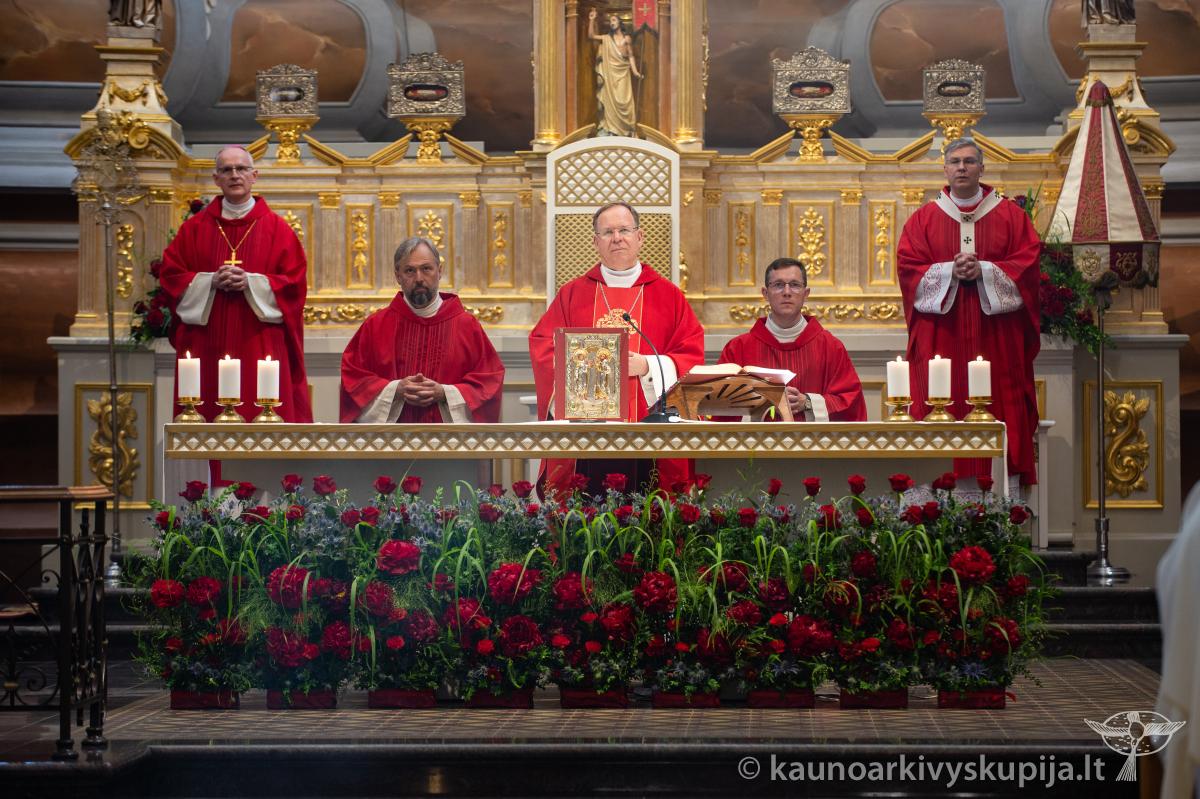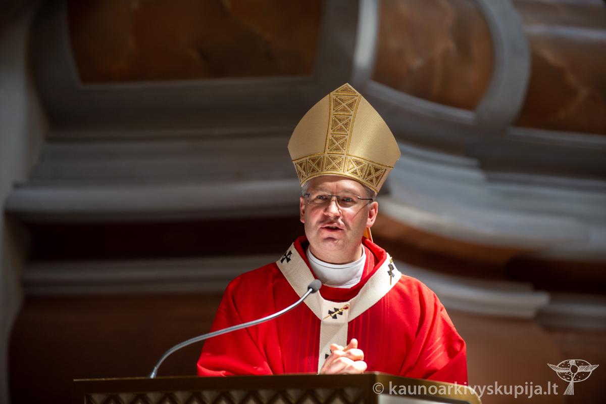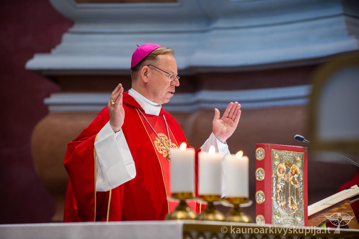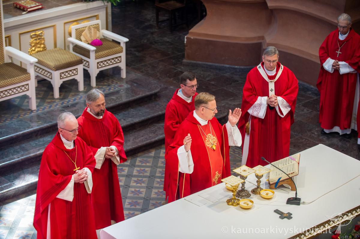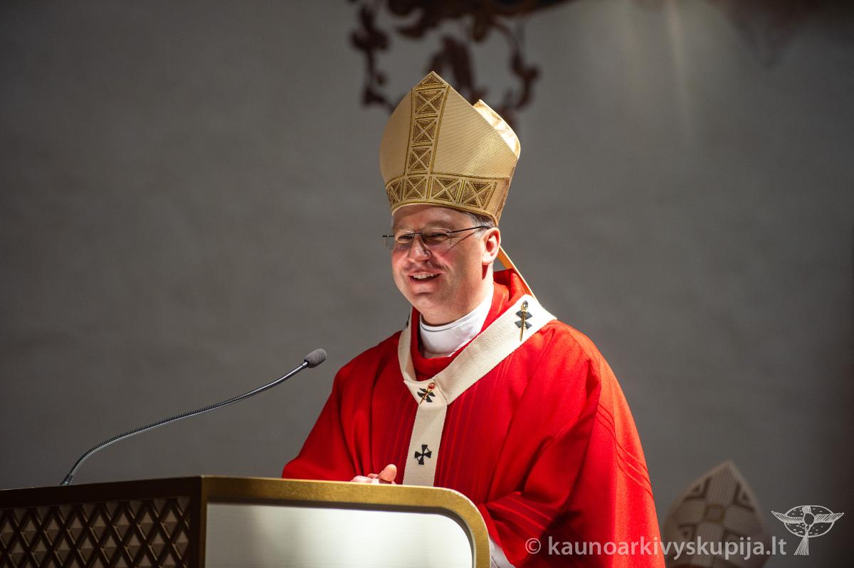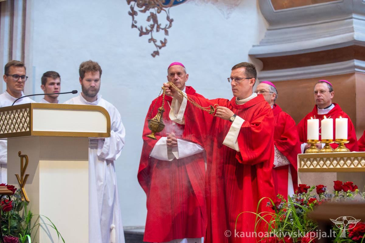 FOTOALBUMAS: Lietuvos sinodinio kelio vyskupijų etapo užbaigimo šventė. Popiežiaus ir vyskupų sveikinimai vyskupams Eugenijui Bartuliui ir Rimantui Norvilai jų konsekracijos 25-mečio proga, apaštališkojo nuncijaus arkivyskupo Petaro Antuno Rajičiaus kunigystės 35-mečio minėjimas. Kauno arkikatedra, 2022 m. birželio 29 d.