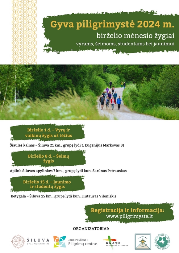 Birželis – gyvos piligrimystės mėnuo. Jono Pauliaus II piligrimų centras su kitais arkivyskupijos sielovados centrais kviečia net į tris piligrimystes – ypatingus susitikimus Šiluvoje.