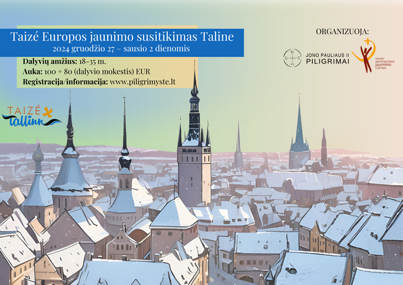 Organizuojame grupę kartu keliauti į Taizé Europos jaunimo susitikimą kaimyninės Estijos sostinėje – Taline, gruodžio 27 (planuojama išvykti 23 val.) – sausio 2 dienomis.