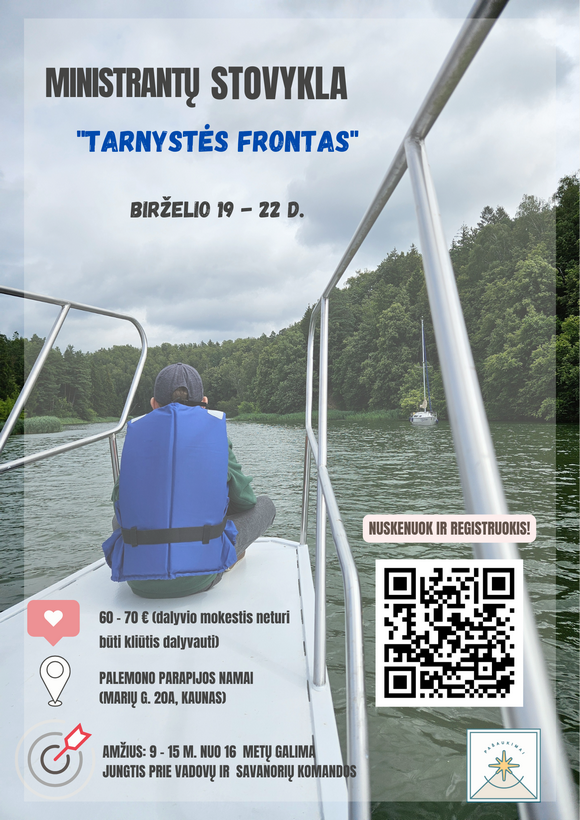 Kauno arkivyskupijos Pašaukimų sielovados komanda organizuoja vasaros stovyklą, skirtą berniukams ministrantams „Tarnystės frontas“.