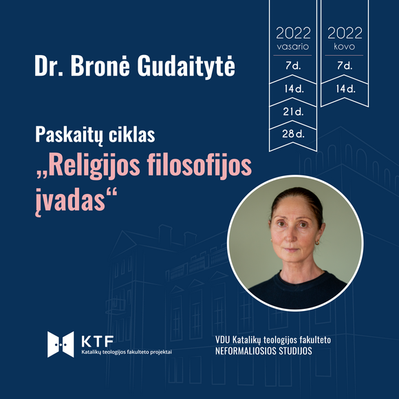 Religijos filosofijos įvadas (6 paskaitų ciklas, lektorė doc. dr. Bronė Gudaitytė).