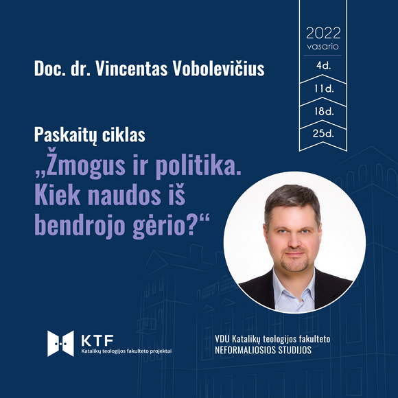 Žmogus ir politika. Kiek naudos iš bendrojo gėrio? (4 paskaitų ciklas, lektorius doc. dr. Vincentas Vobolevičius).