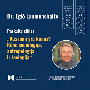 Paskaitų ciklas „Kas man yra kūnas? Kūno sociologija, antropologija ir teologija“. Lektorė – doc. dr. Irena Eglė Laumenskaitė (spalio 13 d.).