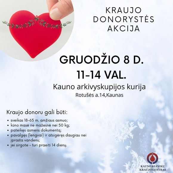 Gruodžio 8 d., ketvirtadienį, nuo 11 iki 14 val. galime prisidėti prie vienos kilniausių savanorystės veiklų, kuri organizuojama Kauno arkivyskupijos kurijoje.
