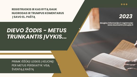 Jau trečius metus, baigiantis metams, Kauno arkivyskupijos kurijos Sielovados skyrius ir Misijų mokyklos komanda pasiūlo iššūkį naujiesiems metams – perskaityti visą Šventąjį Raštą per metus.
