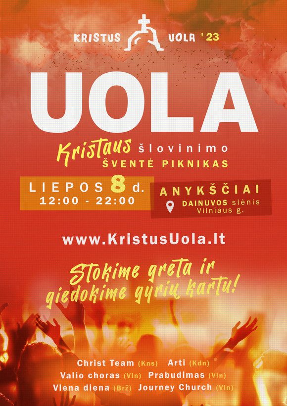 Daugiau informacijos www.kristusuola bei FB paskyroje Šlovinimo piknikas „Kristus-Uola“