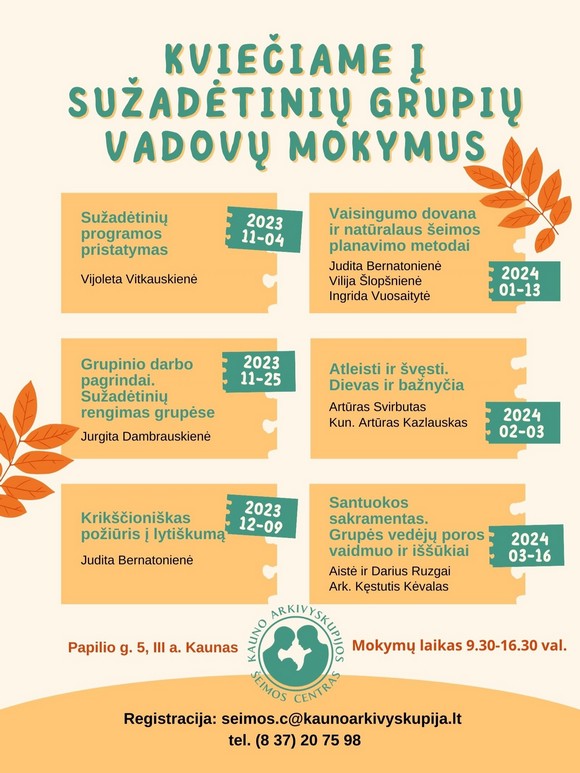 Lapkričio 4 d. prasideda nauji mokymai, kuriuose bus aptariami aktualūs šeimos gyvenimo ir tikėjimo klausimai, taip pat būdai, kaip dirbti su sužadėtinių grupe.