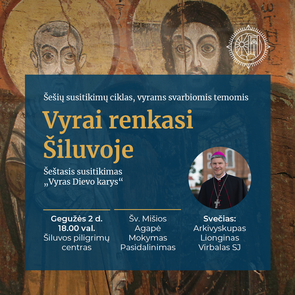Kviečiame vyrus nepraleisti paskutinio „Vyrai renkasi Šiluvoje“ susitikimo. Susitikimų ciklą užbaigsime dar viena svarbia tema – „Vyras Dievo karys“. Kartu atsiversime sudėtingai bei daugiasluoksnei diskusijai.