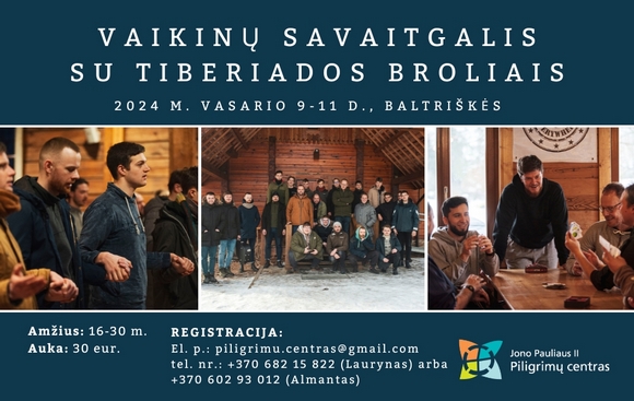 Vasario 9–11 d. Jono Pauliaus II piligrimų centras kviečia į tradicinį Vaikinų savaitgalį su Tiberiados broliais Baltriškėse.