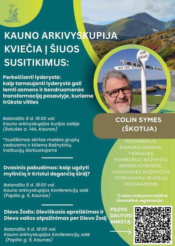 Kauno arkivyskupija balandžio 8–9 d. (pirmadienį ir antradienį) kviečia į susitikimus Kaune, kuriuos ves COLIN SYMES, Lietuvoje jau gerai pažįstamas misionierius, pamokslininkas iš ŠKOTIJOS.