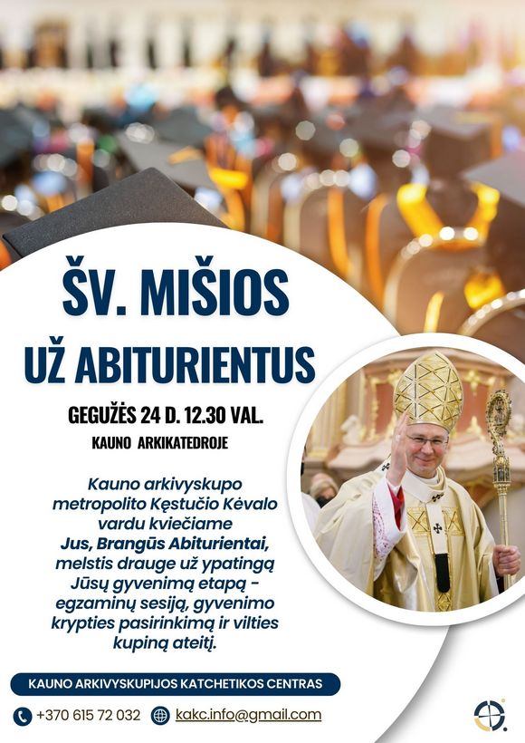 Gegužės 24 d. arkivyskupas kviečia: ŠV. MIŠIOS už ABITURIENTUS Kauno arkikatedroje