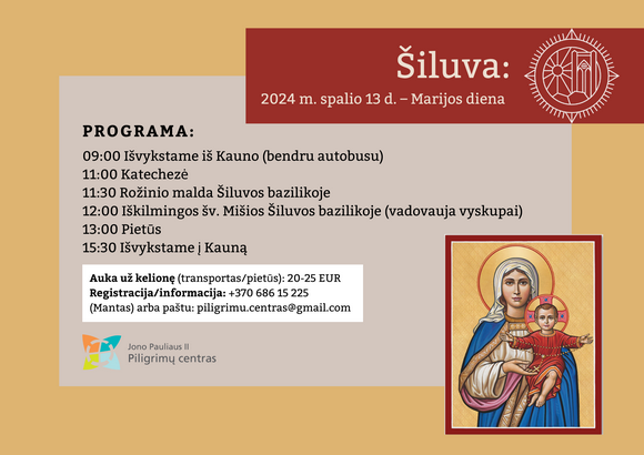 Spalio 13 d. Jono Pauliaus II piligrimų centras kviečia kartu keliauti į Šiluvą (registracija)