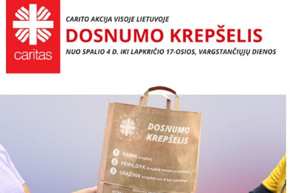 Spalio 4-ąją, švenčiant Šv. Pranciškų Asyžietį, Lietuvos Caritas išplatino pranešimą apie „Dosnumo krepšelio“ iniciatyvą. 17 tūkstančių Dosnumo krepšelių su prašomų paaukoti ilgo galiojimo maisto produktų sąrašais Caritas paruošė dalijimui įmonėse, įstaigose, organizacijose, mokyklose, darbo ar draugų kolektyvams, šeimoms, pavieniams geradariams. Po lapkričio 17-osios – Vargstančiųjų dienos – pripildytus „Dosnumo krepšelius“ savanoriai neš vienišiems, sergantiems, kitų sunkumų patiriantiems žmonėms.