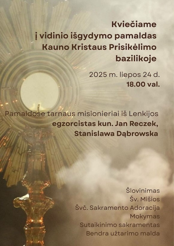 Sielovados bendruomenė „Gailestingumo versmė“ kviečia į vidinio išgydymo pamaldas su kun. Jan Reczek (Janas Rečekas) ir Stanislawa Dąbrowska (Stanislava Dambrovska) iš Krokuvos (Lenkija).