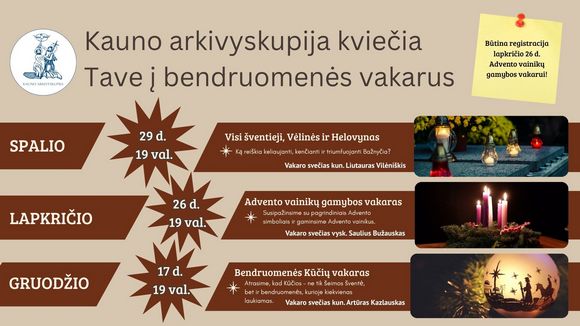 Todėl Kauno arkivyskupija kviečia Tave į bendruomenės vakarus – ypatingą susitikimų ciklą, kur šventės atgyja, tradicijos įgauna naują prasmę, o klausimai randa atsakymus. Čia bus vietos tiek rimtai minčiai, tiek bendrystei prie stalo, tiek šilumai, kurios taip pasiilgstame tamsiais vakarais.