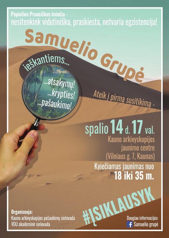 Kaune ir vėl startuoja Samuelio grupė! Pirmasis susitikimas jau spalio 14 d. 17 val. Kauno arkivyskupijos Jaunimo centre (Vilniaus g. 7, Kaunas).