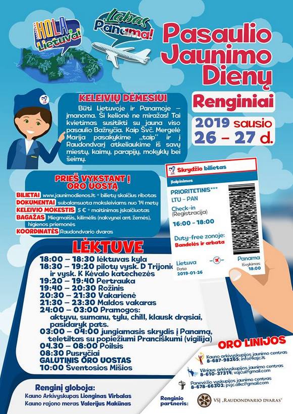 2019 metų Pasaulio jaunimo dienos vyks Panamoje. Tačiau, suprantama, ten nuvykti mažai kas galės, tad siūlome alternatyvų būdą išgyventi Pasaulio jaunimo dienas.