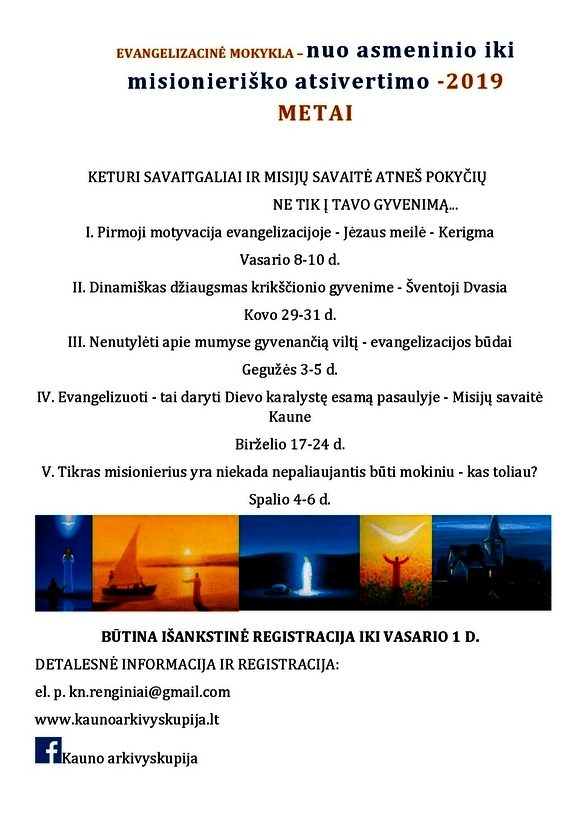 Kviečia EVANGELIZACIJOS MOKYKLA – nuo asmeninio iki misionieriško atsivertimo – 2019. Registracija iki vasario 1 d.